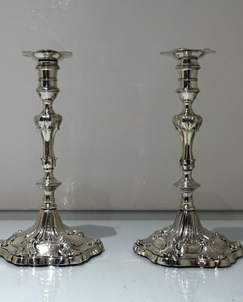 Mid 18th Century Antique George III Sterling Silver Pair Candlesticks London 1763 William Cafe