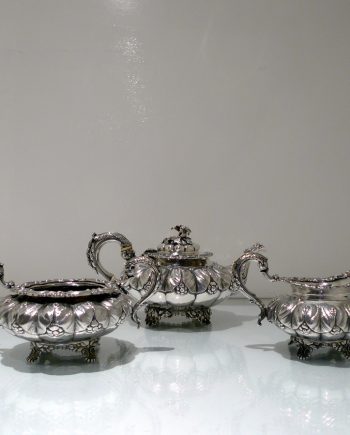 Early 19th Century Antique William IV Sterling Silver Irish Three Piece Teaset Dublin 1830 Robert Smith & James Gamble