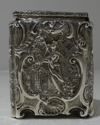 Mid 19th Century Antique Victorian Sterling Silver Chinoiserie Tea Caddy London 1855 Joseph Angell