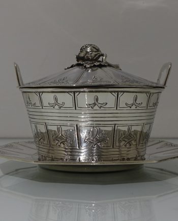19th Century Antique Victorian Sterling Silver Butter Dish on Stand London 1848 Benoni Stephens