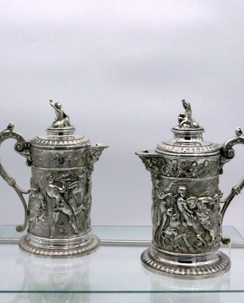 19th Century Antique Victorian Silverplate Pair Wine Jugs Circa 1870