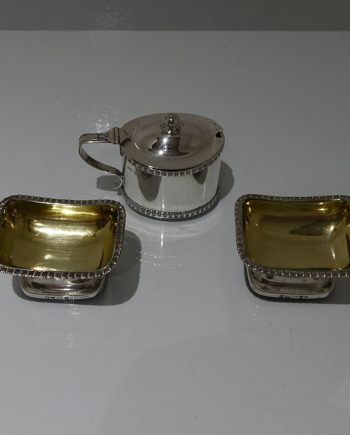 Early 19th Century Antique George III Sterling Silver Pair Salts & Mustard Pot Edinburgh 1819 W & P Cunningham