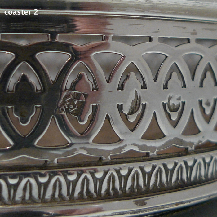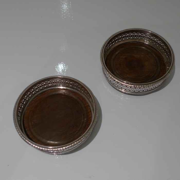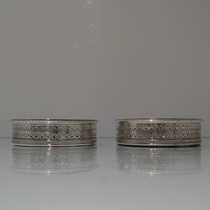 A stylish pair of early 19th century circular coasters elegantly hand pierced around there bodies which is then sandwich between elegant upper and lower ornate borders for high/lowlights.