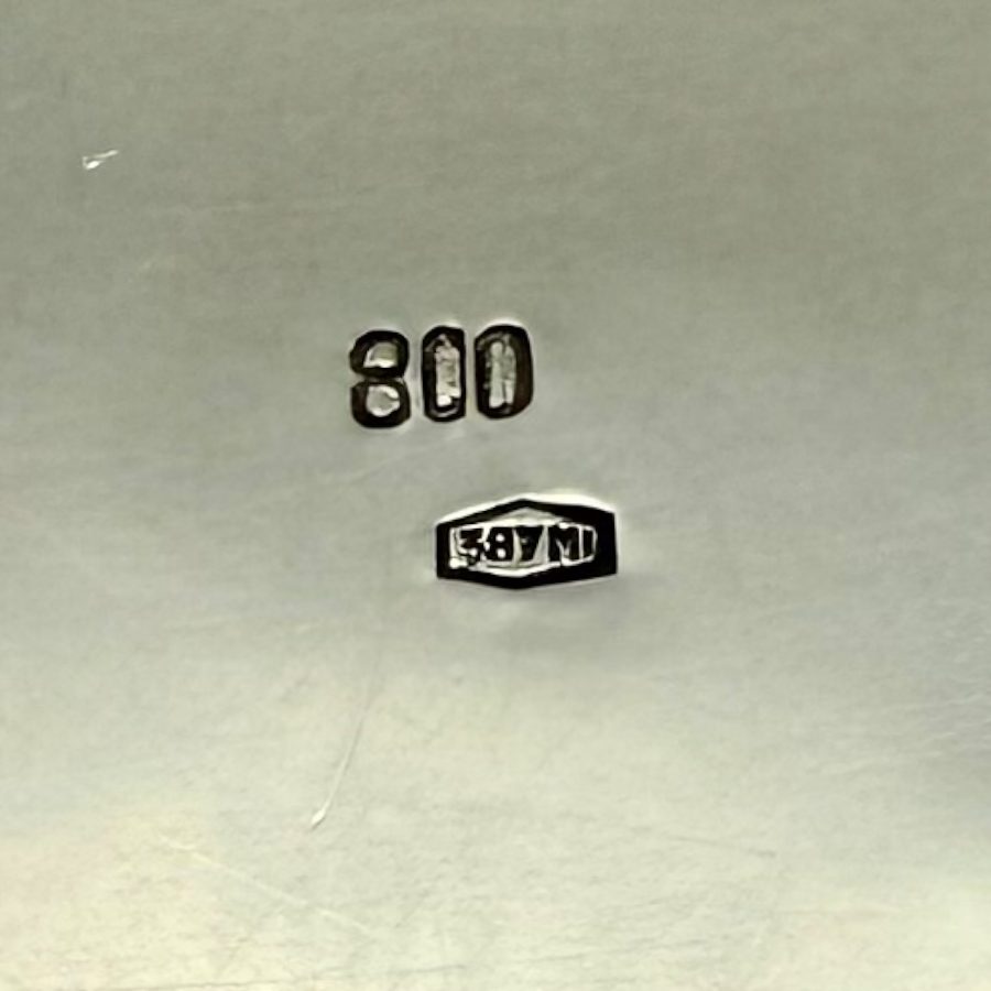 Smart and beautifully designed modern silver cocktail shaker designed with elegant tapering walls and applied cast grape and vine detailing for highlights.