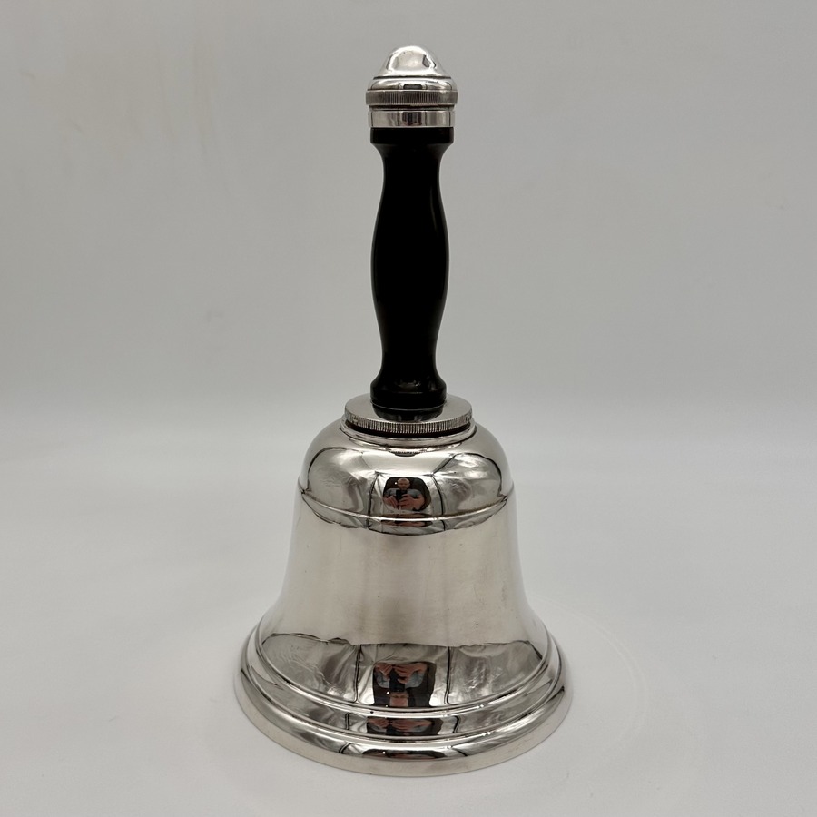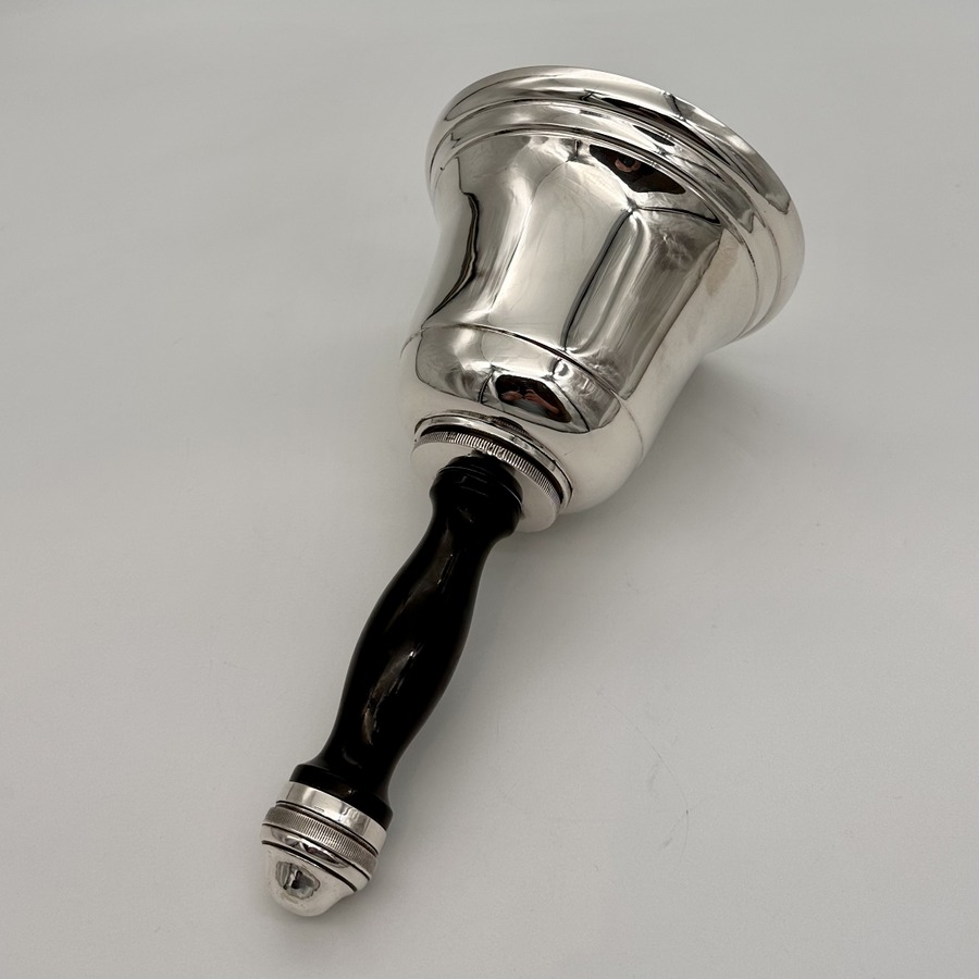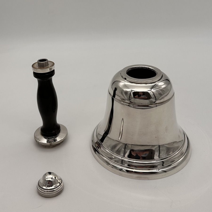 A delightful mid 20th century EPNS bell formed cocktail shaker designed with a fabulous wooden handle which also functions as a pouring spout.