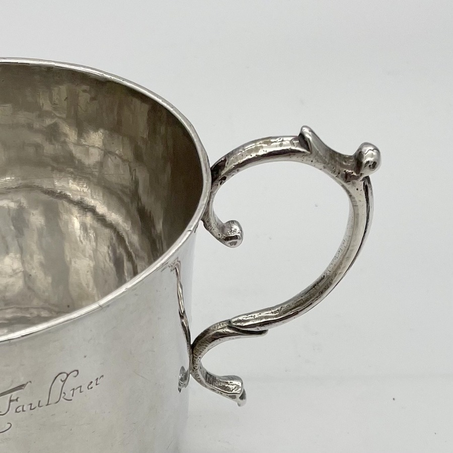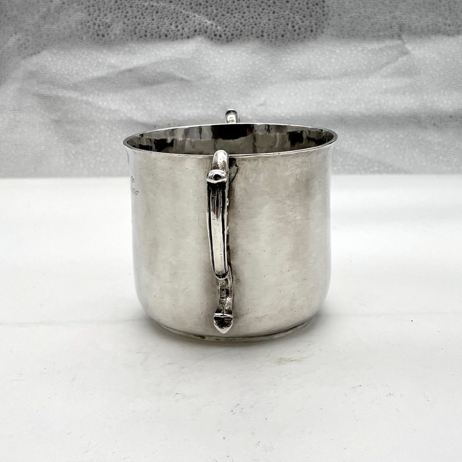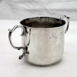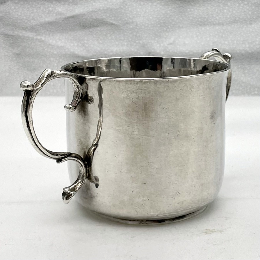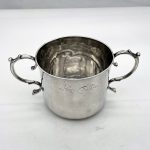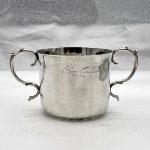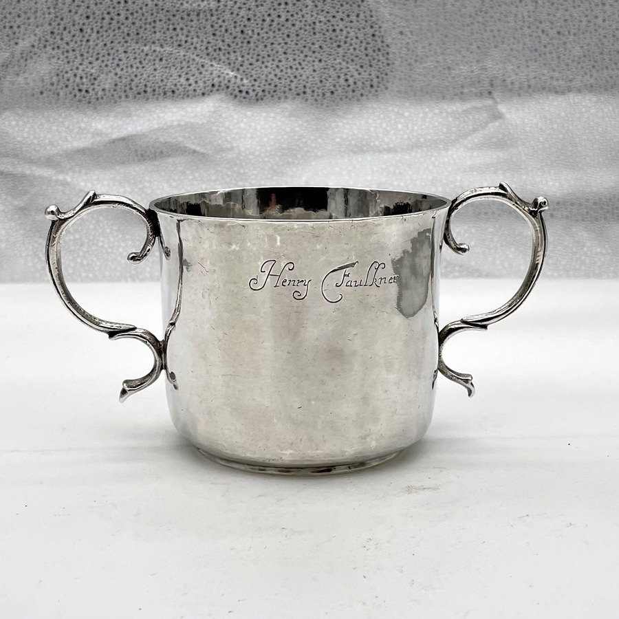 A truly fine Charles II silver porringer designed with a beautifully shaped plain formed bowl and two stylish applied scroll handles. Â The wonderfully hammered bowl has a pristine patina and a sweet presentational contemporary hand engraved inscription.
