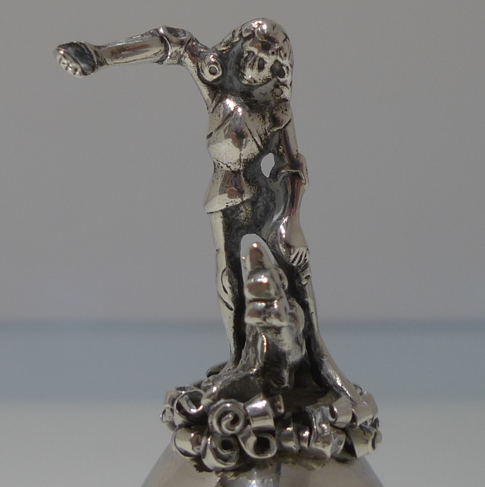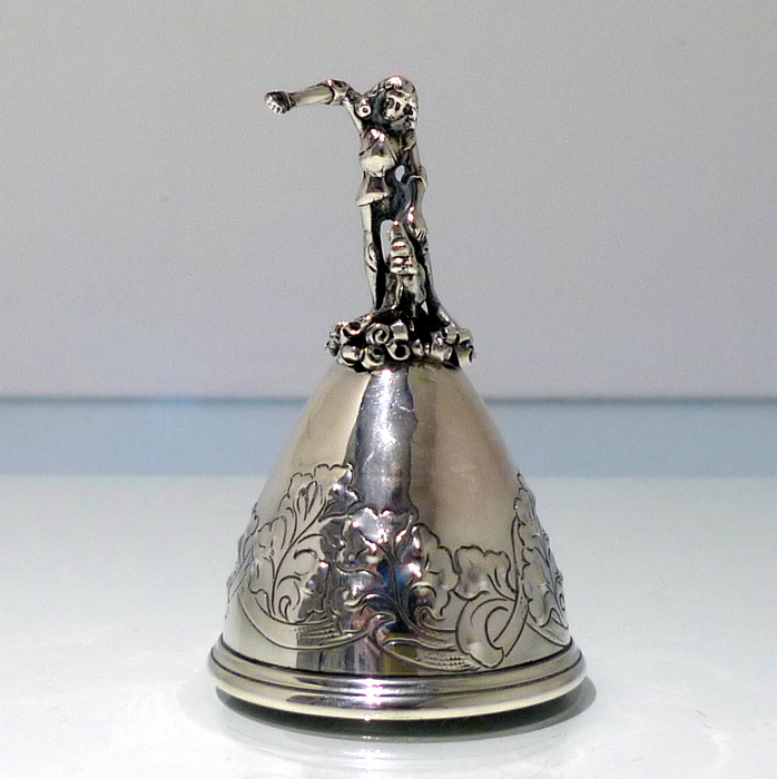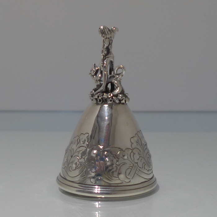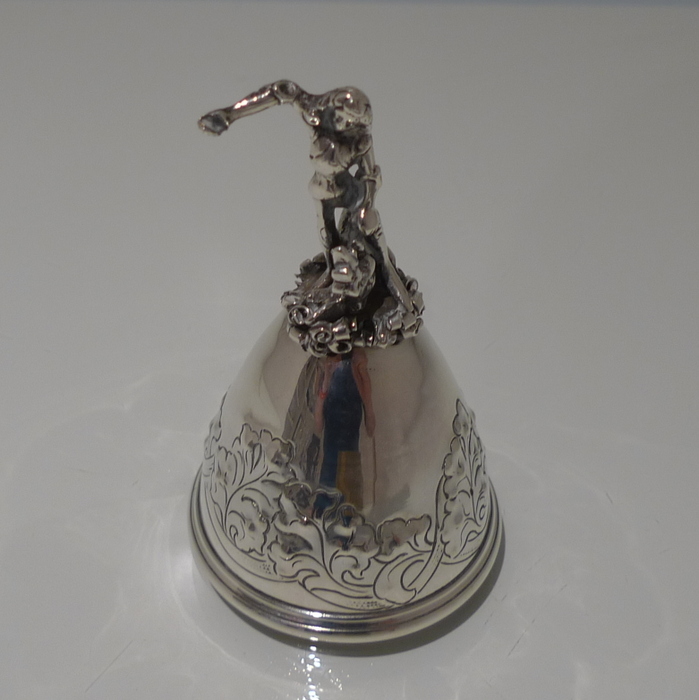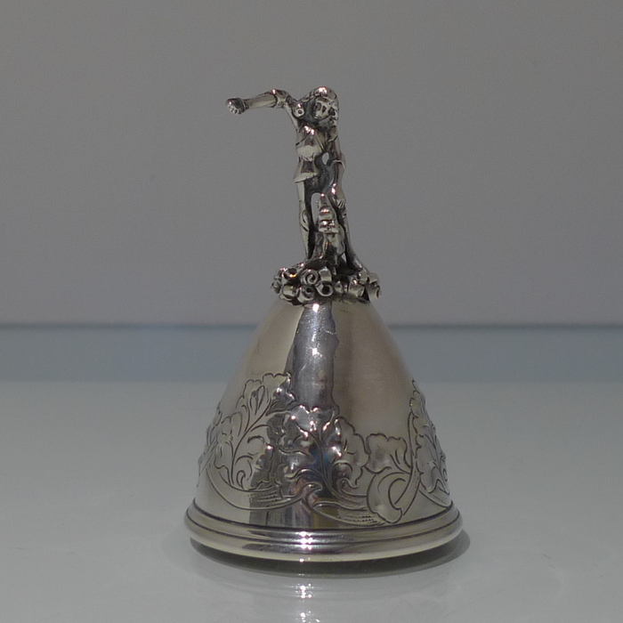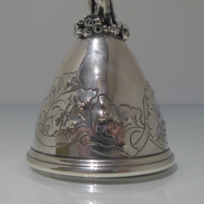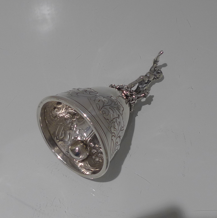 A beautiful Edwardian bell with elegant floral decoration on the bowl for lowlights.  The handle is incredibly stylish and has been cast in a figural form for decorative highlights.