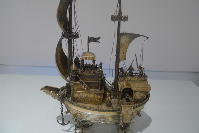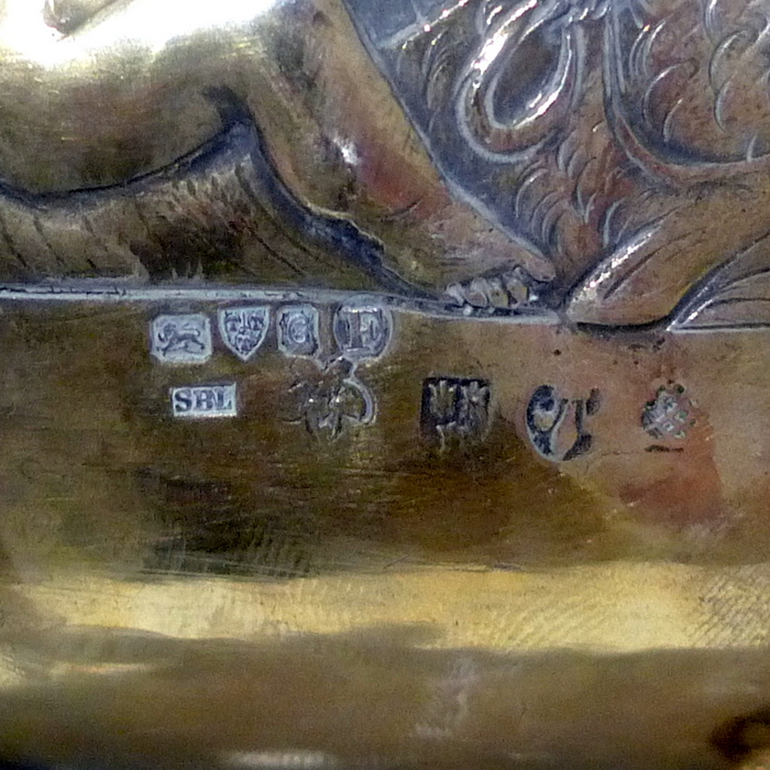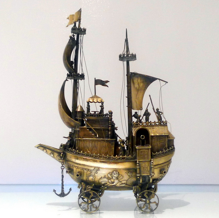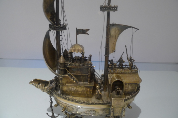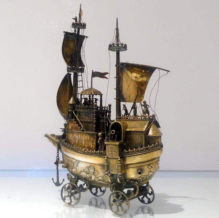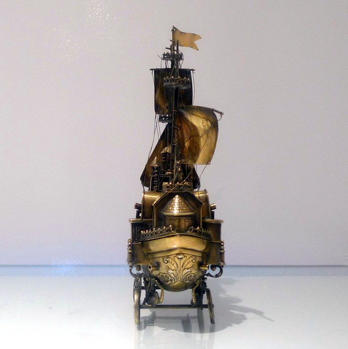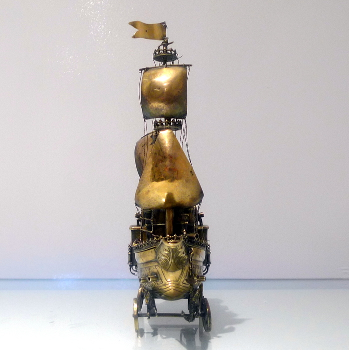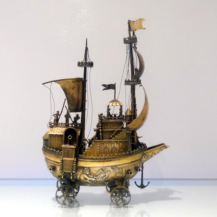 A very elegant mid sized silver gilt Edwardian neff elegantly decorated with cherubs and floral motifs to the base. Â The deck of the neff has splendid scenes depicting “everyday” sailors lives.