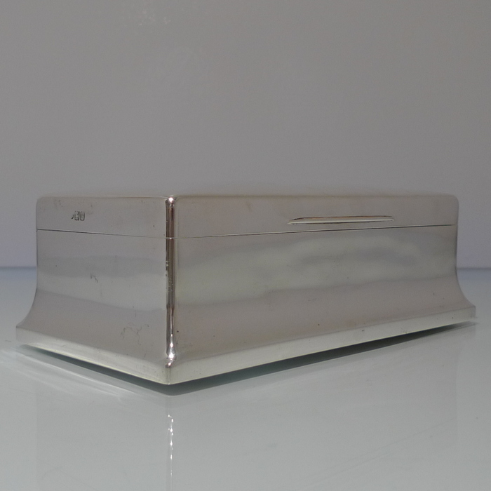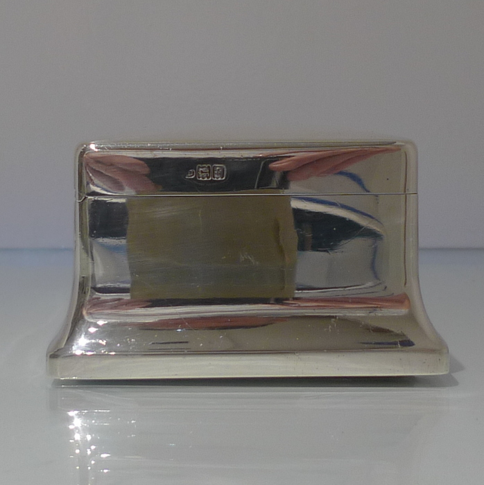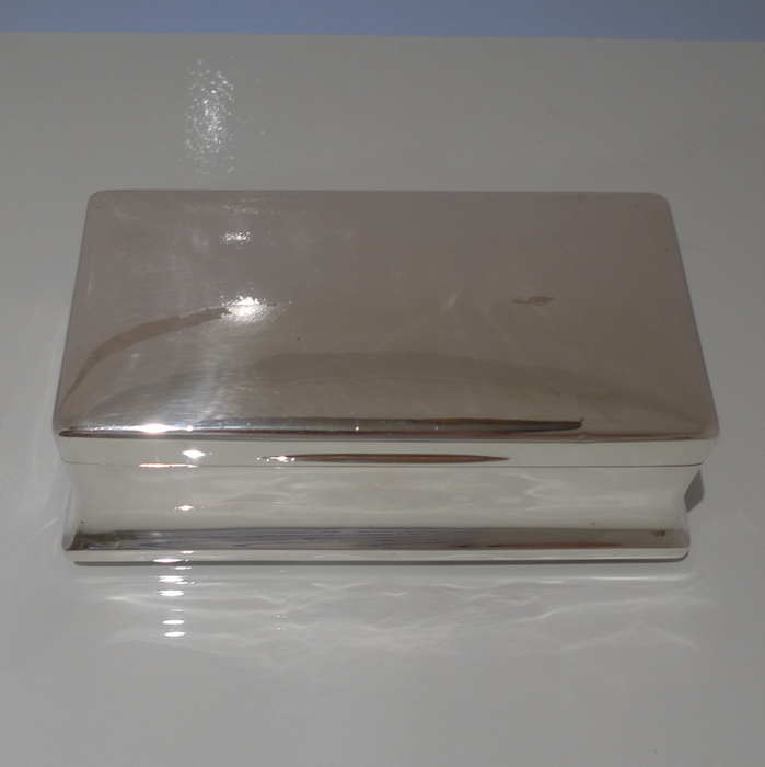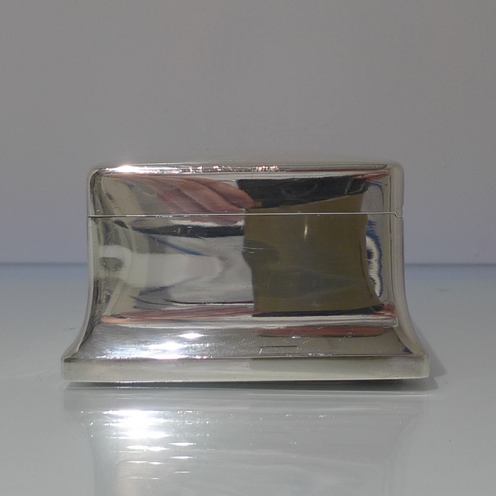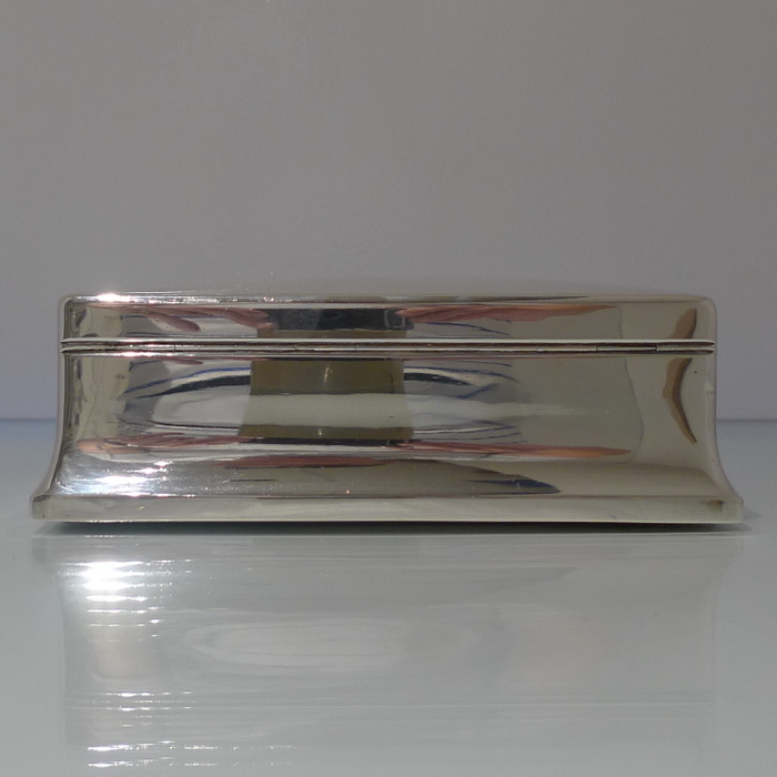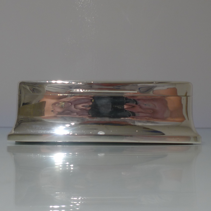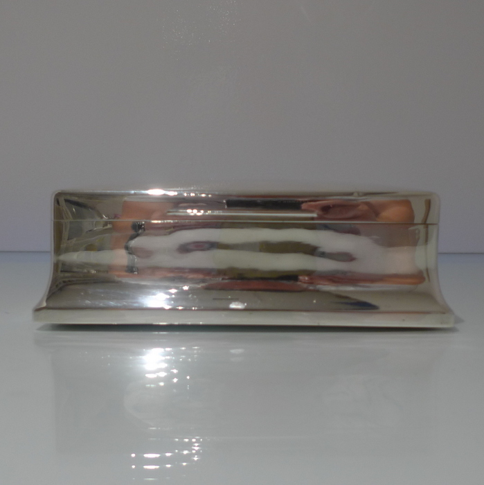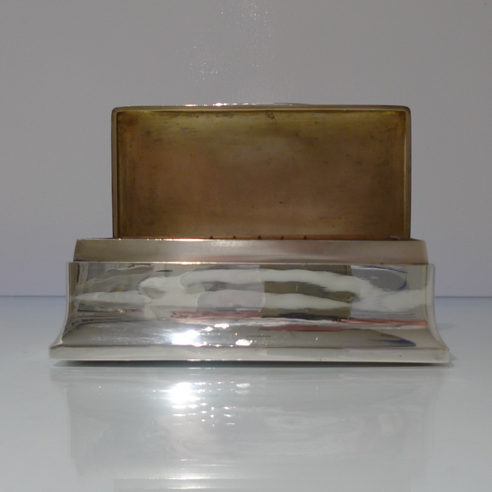 A beautiful early 20th century plain formed rectangular shaped cornered cigarette box. Â The lid is hinged and the underside has been elegantly gilded for contrast.
