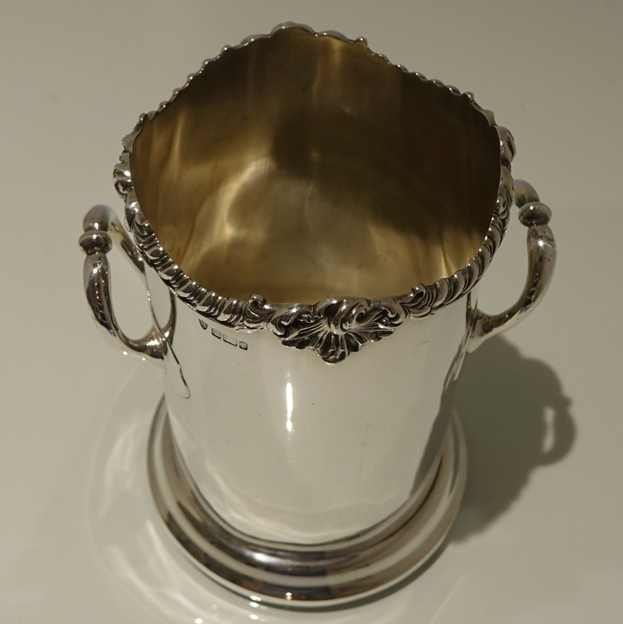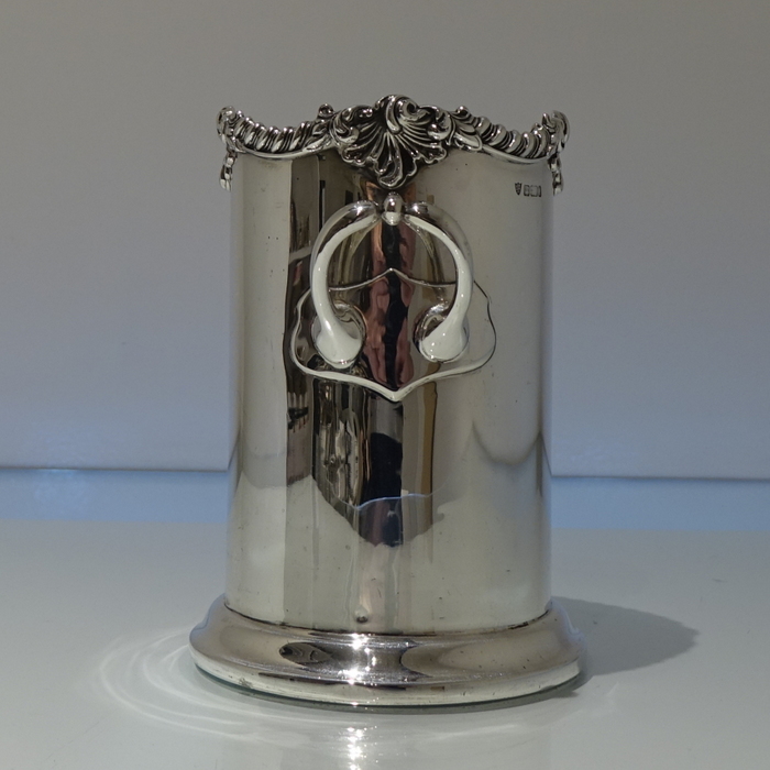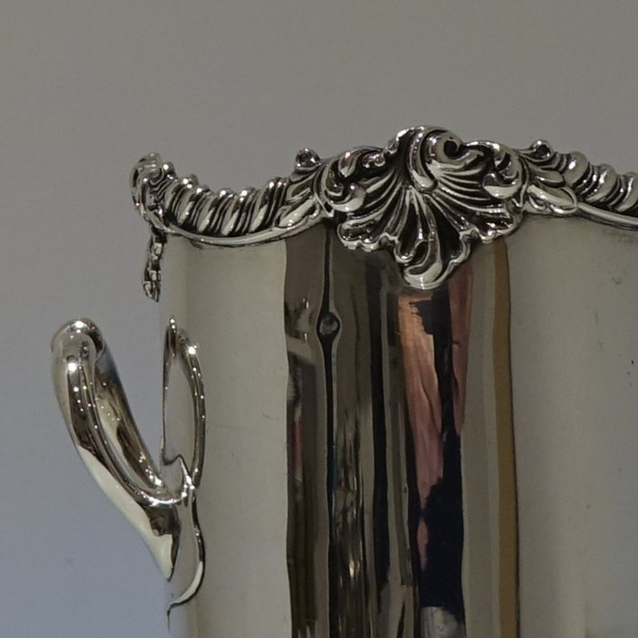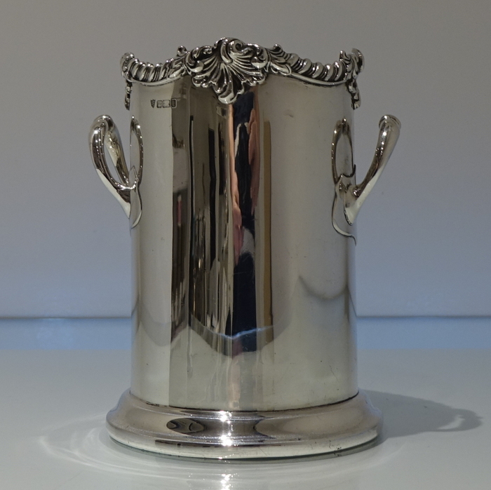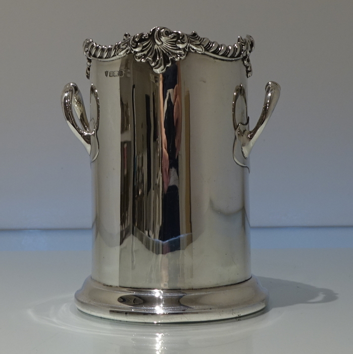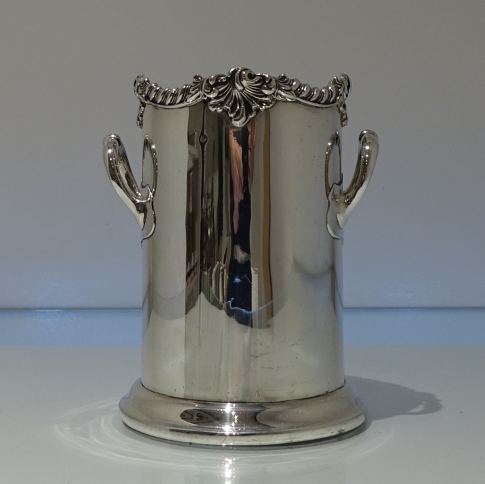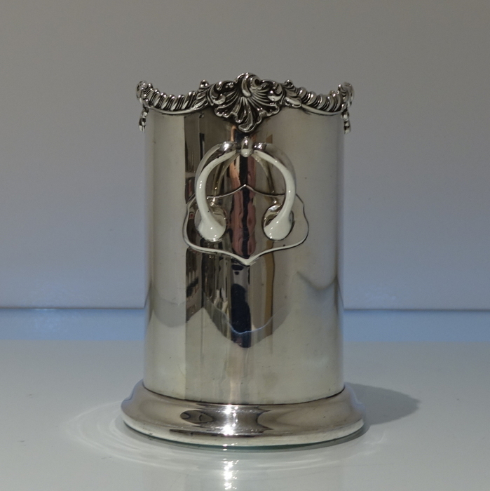 An elegant Edwardian silver siphon/wine holder cylindrical in design with elegant gadroon and shell shaped border for highlights. There are two stylish handles elegantly attached to plain formed body.