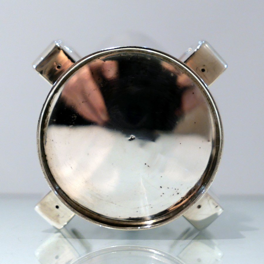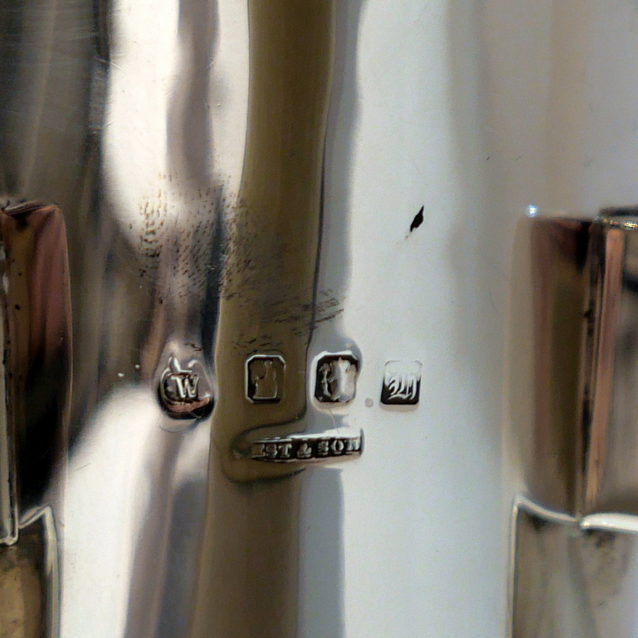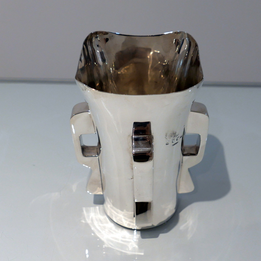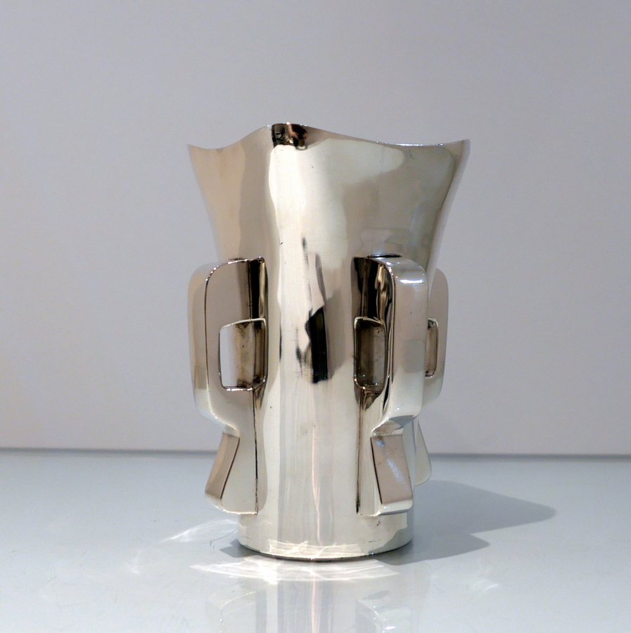 A stylish Edwardian four handled silver flower vase/cup designed with an elegantly tapering plain formed body. Â The magnificently stylish “square’ formed applied handles have a ‘gothic’ orientated stylisation.