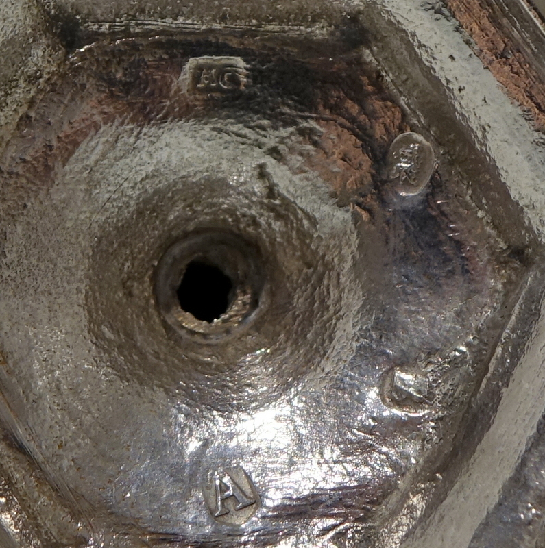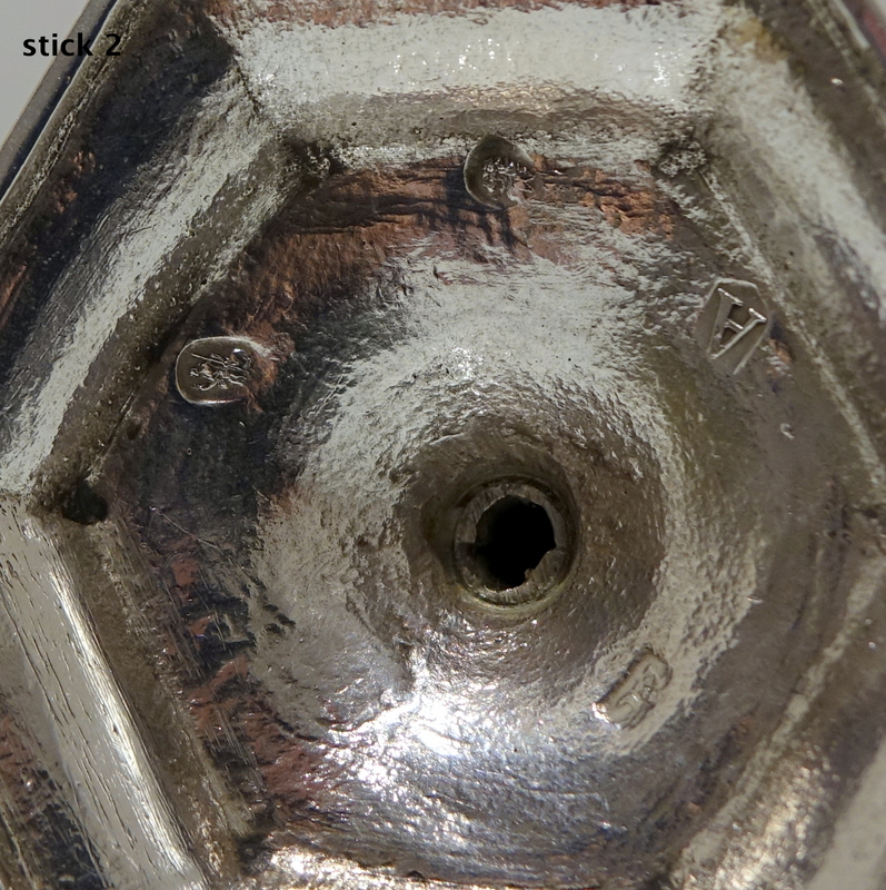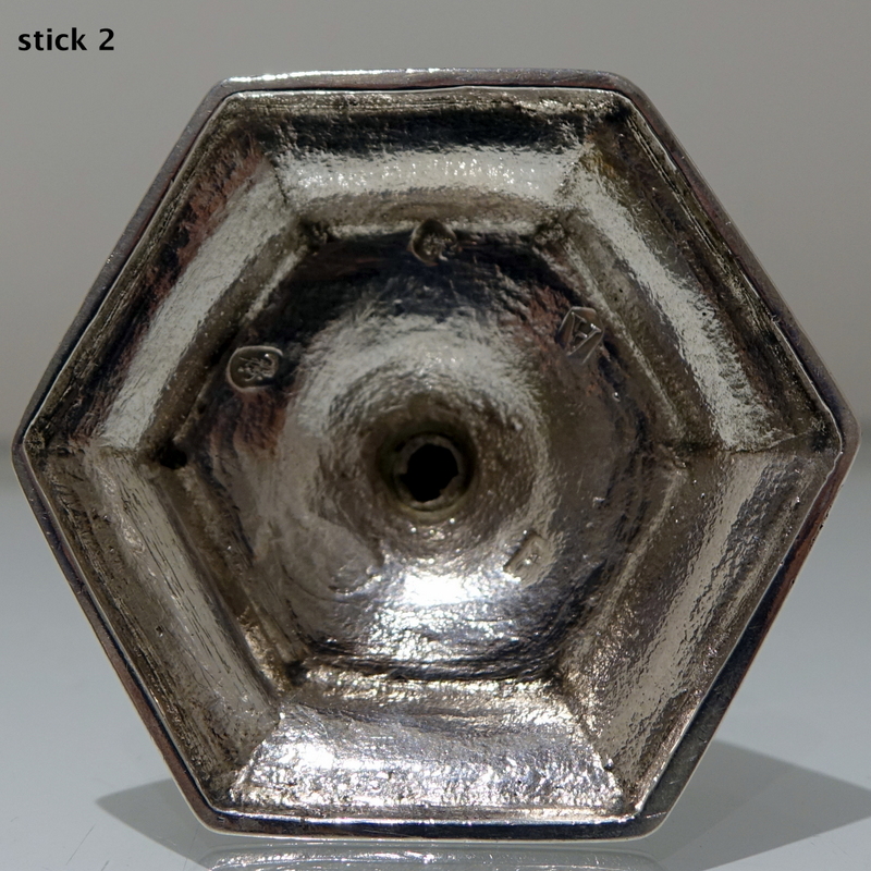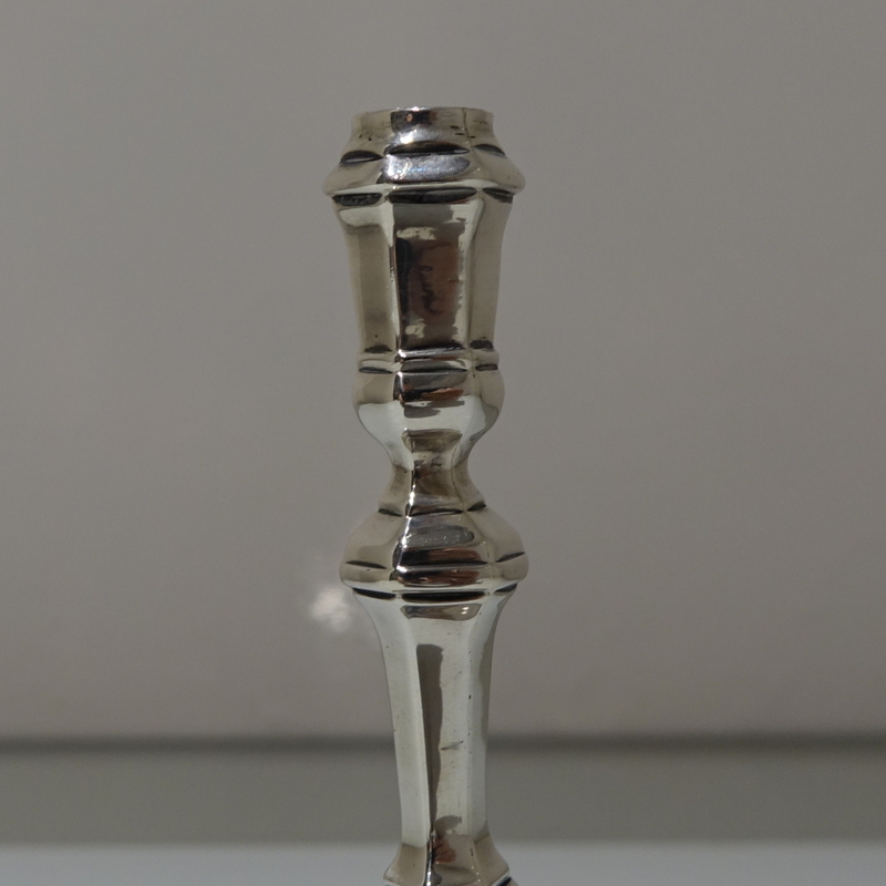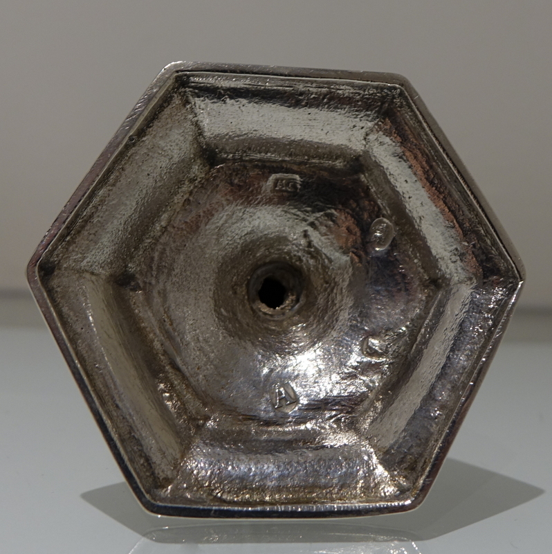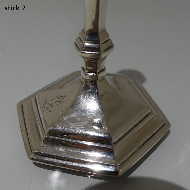 A stunning pair of plain formed early Georgian cast hexagonal silver taper-sticks. Â The pedestal bases both have elegant contemporary crests.