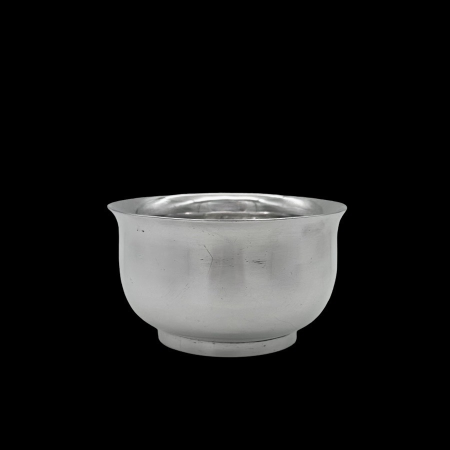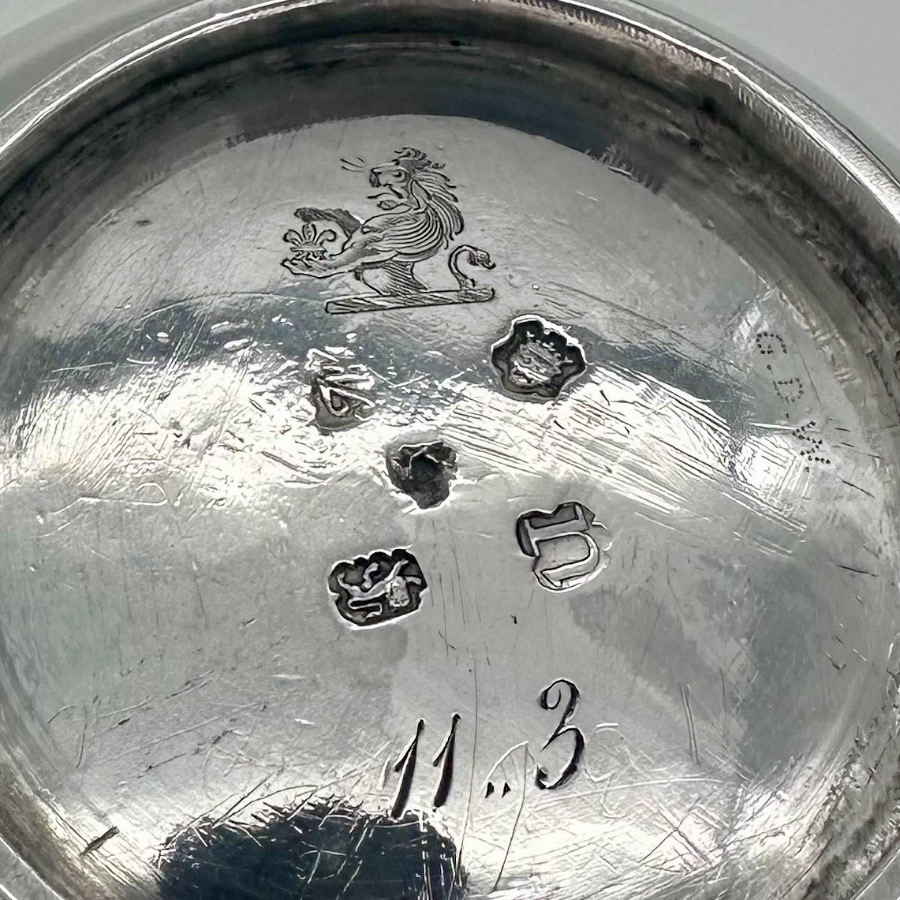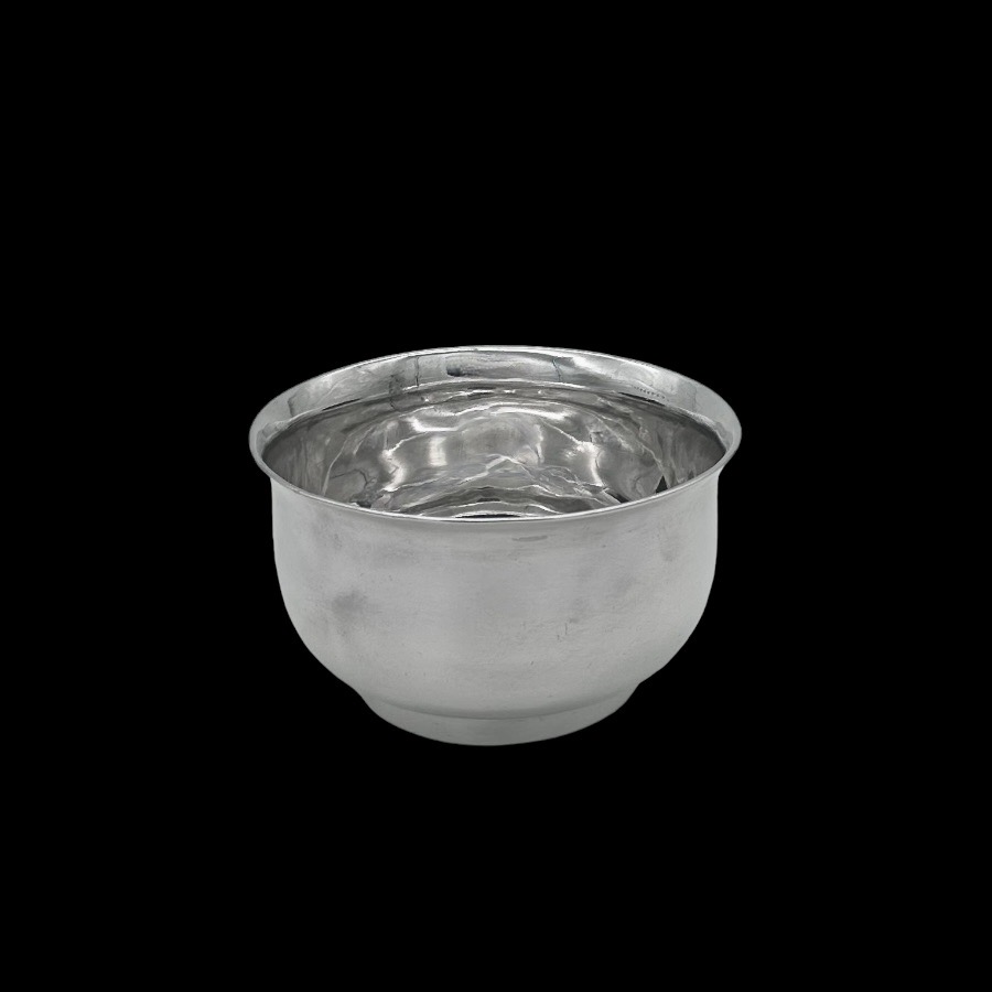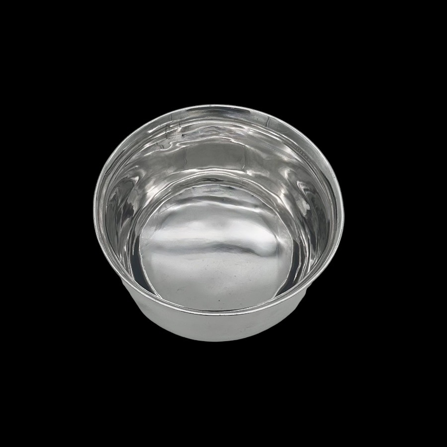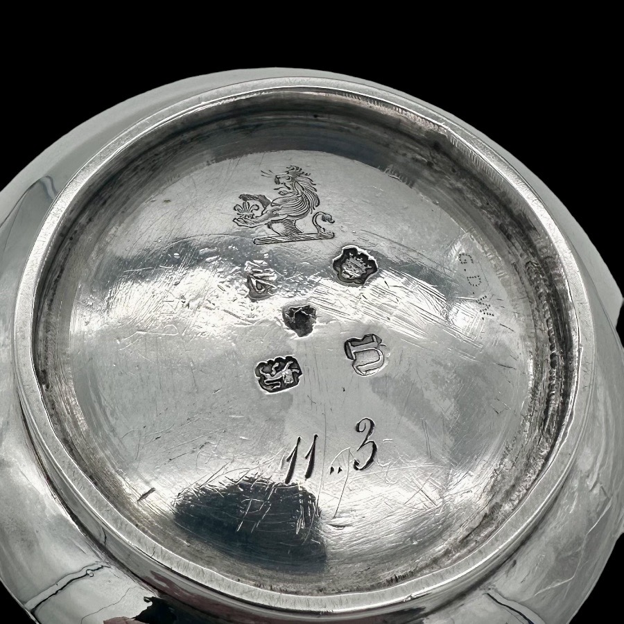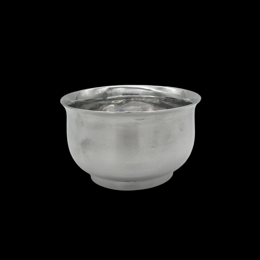 Incredibly quality small plain formed circular George II silver sugar bowl designed with a delightful curvaceous upper rim and beautifully crested (original) on the underside of the foot.