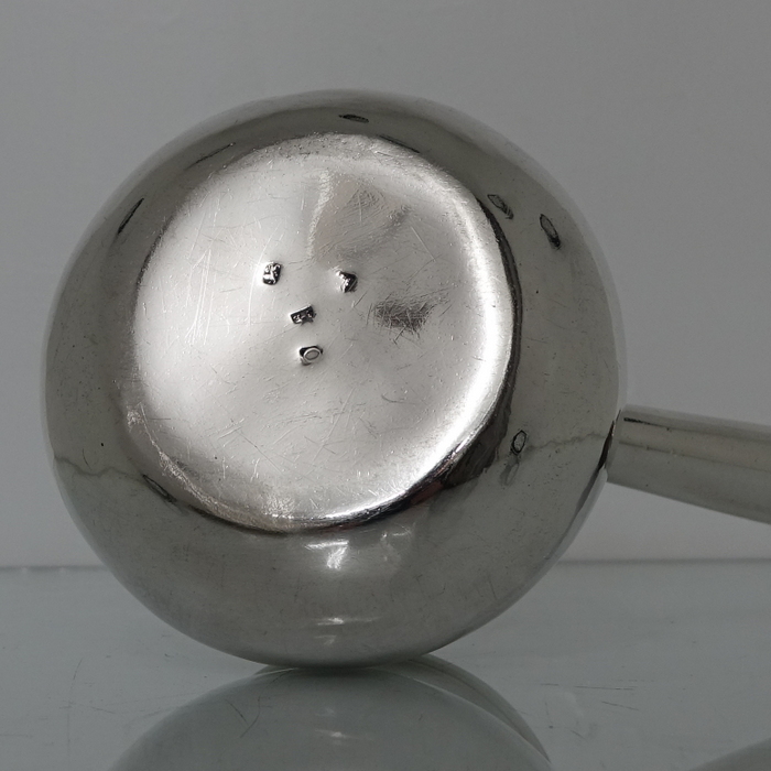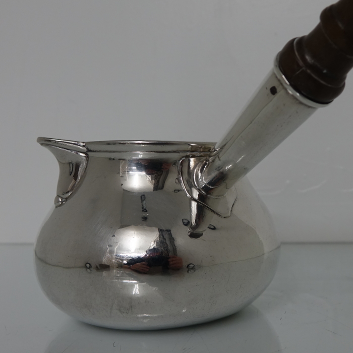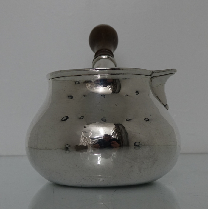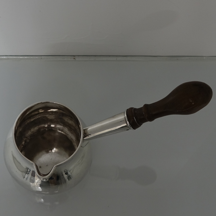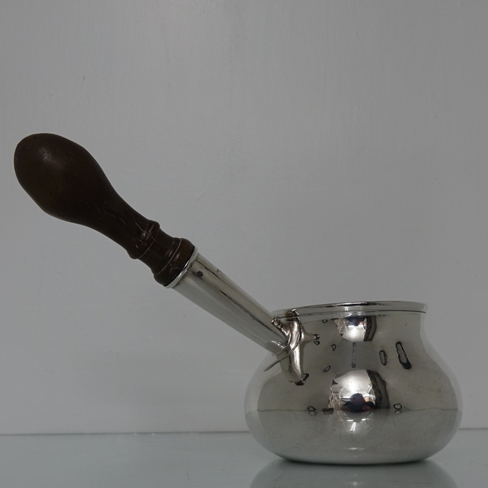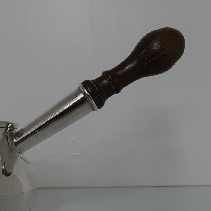 A very large and fine quality plain formed cauldron shaped brandy pan with fruit wood handle. Â The brandy pan is marked on the underside of the base.