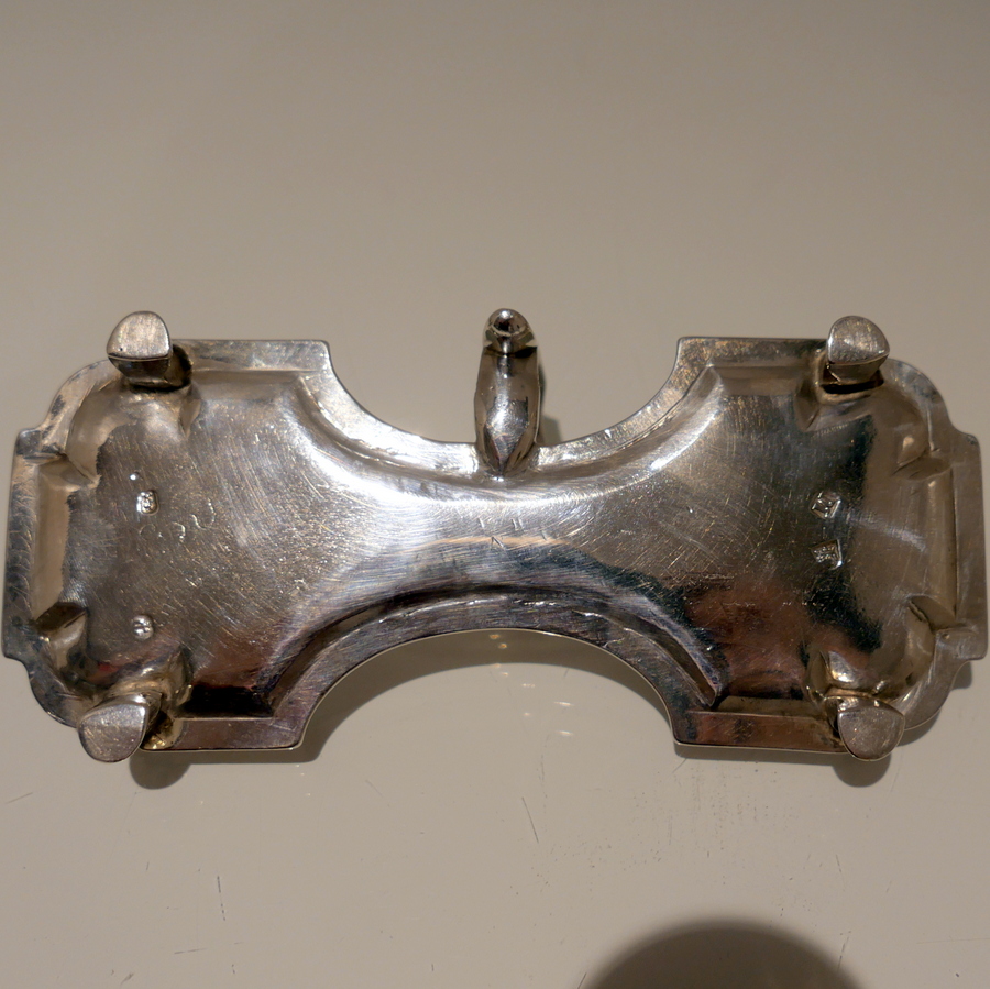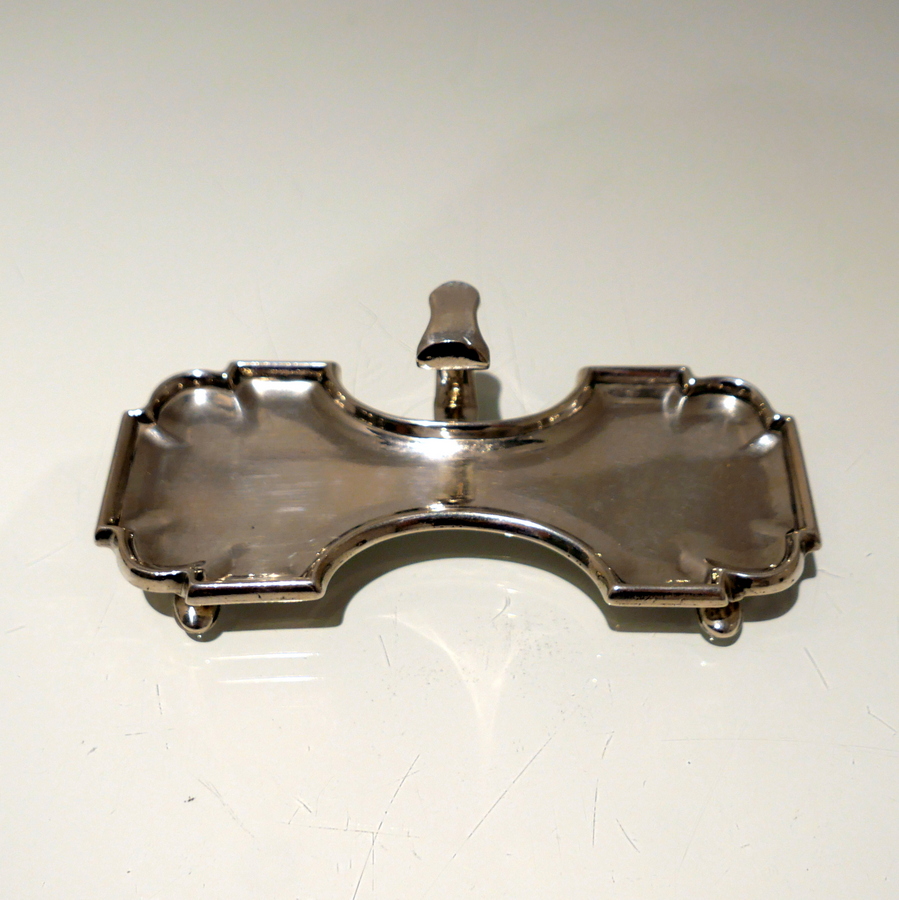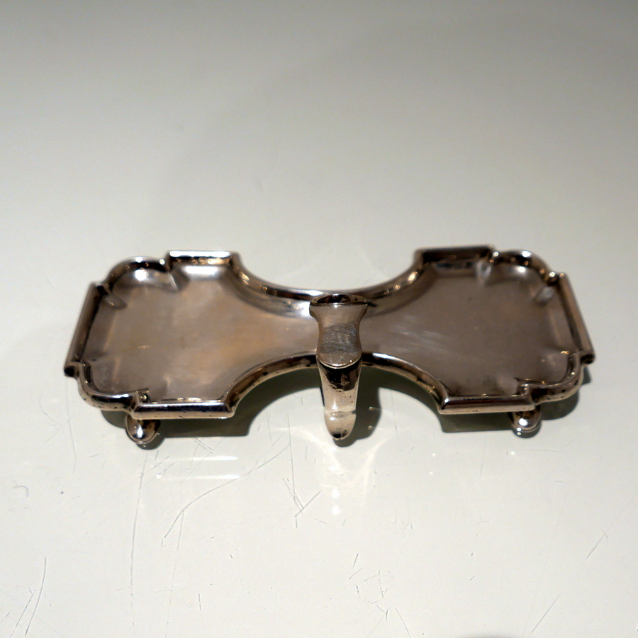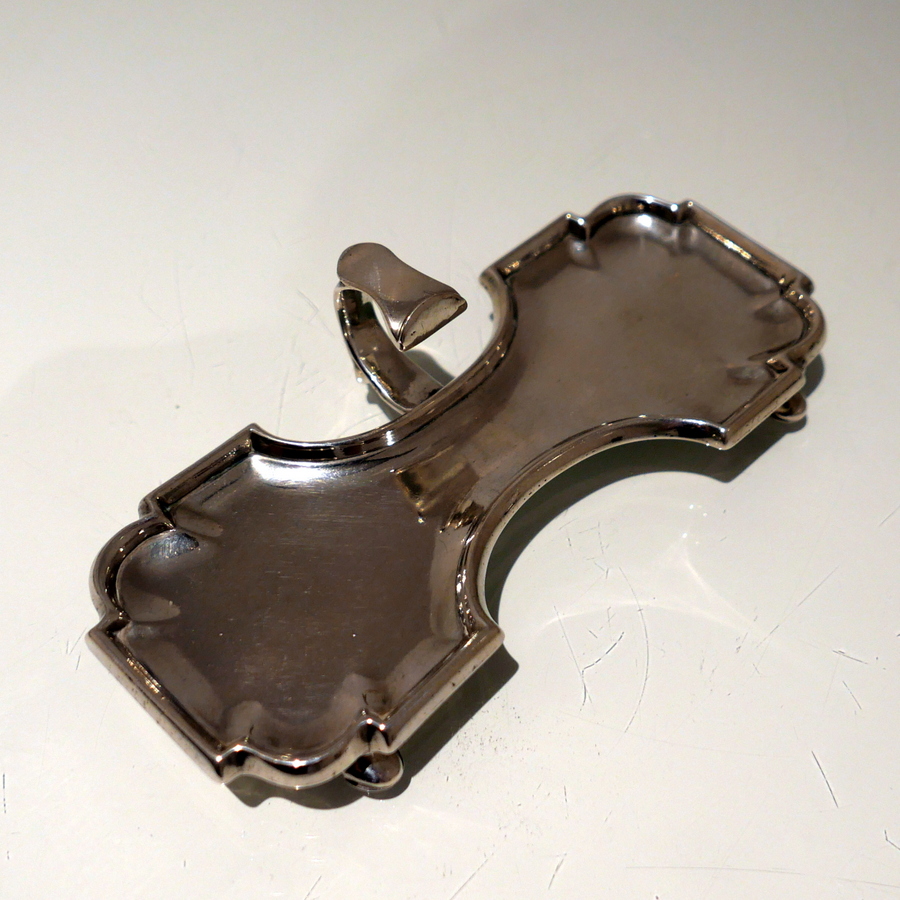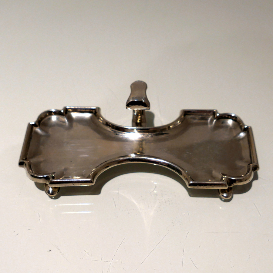 A rare early 18th century silver snuffer tray plain formed in decoration and exquisitely shaped in moulding. Â The tray sits on four feet and has a delightful central flying scroll handle.