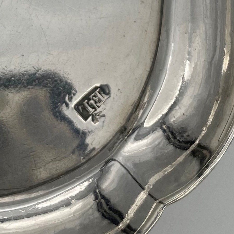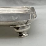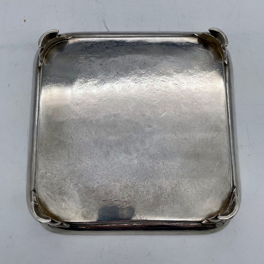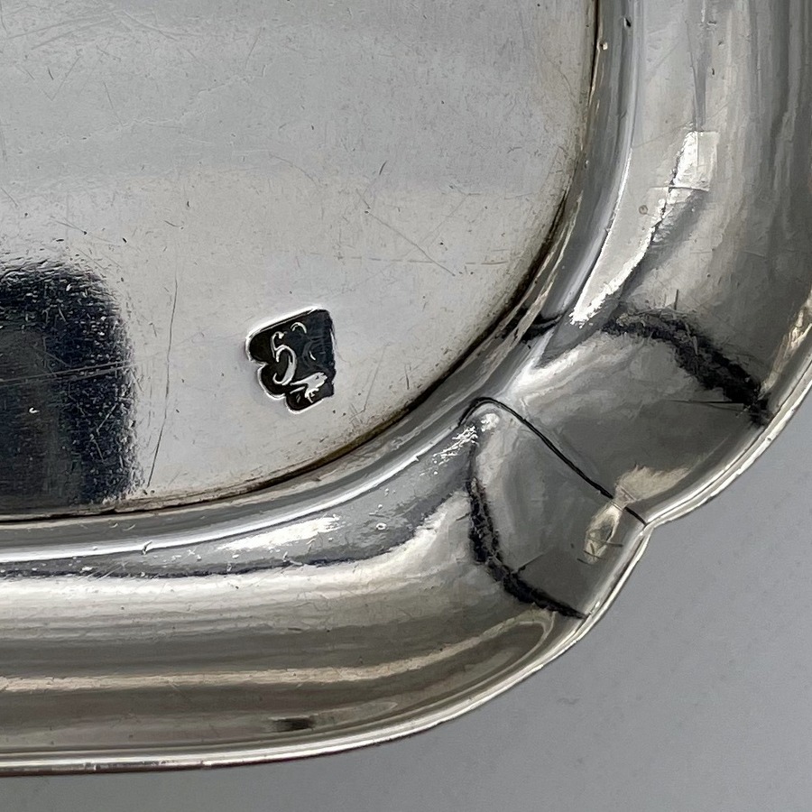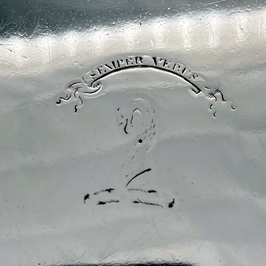 A rare and highly collectable George II shaped square silver salver designed with an elegant plain formed body and raised outer concave walls. Â The salver sits on four stylish feet and has a beautiful hand engraved contemporary crest for importance.