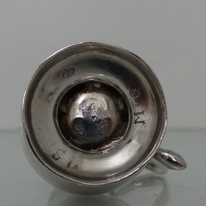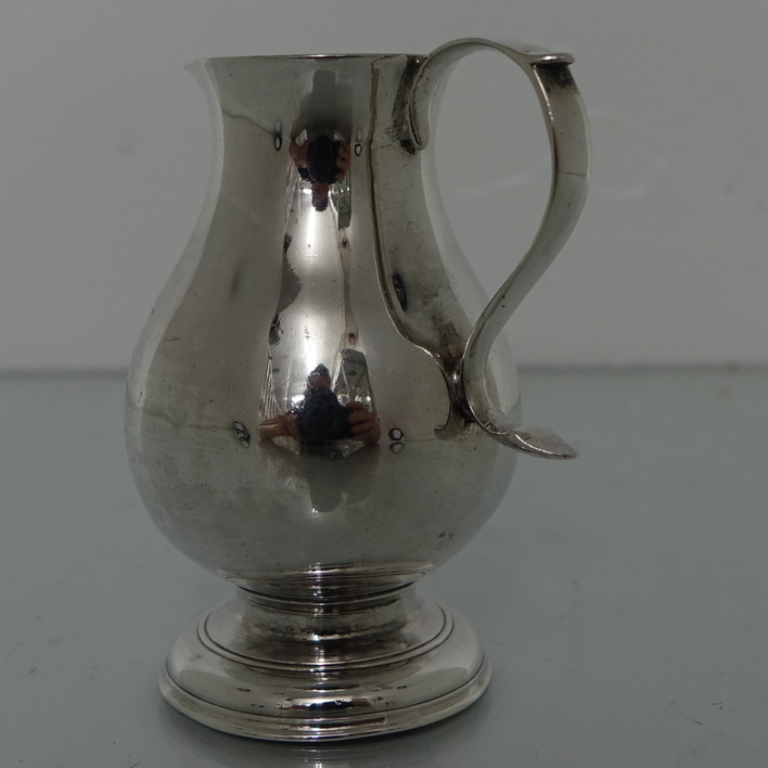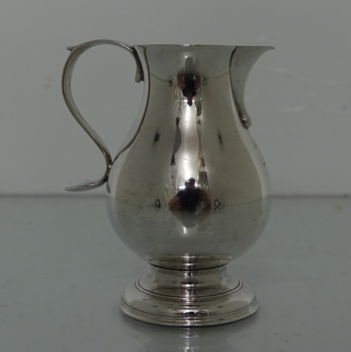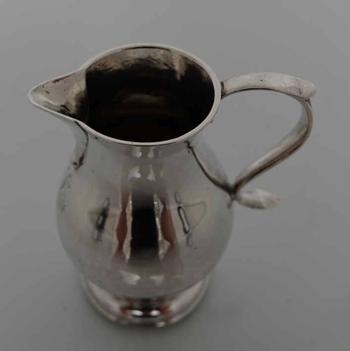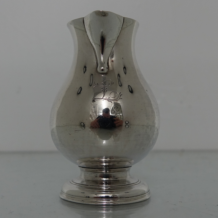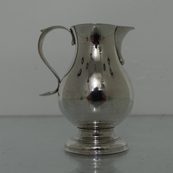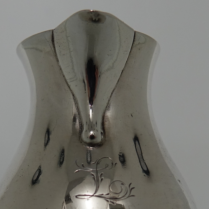 A very elegant George II sparrow beaked baluster formed cream jug with scroll handle. The cream jug is makers mark only which has been struck four times to replicate the hallmarking system of that period.