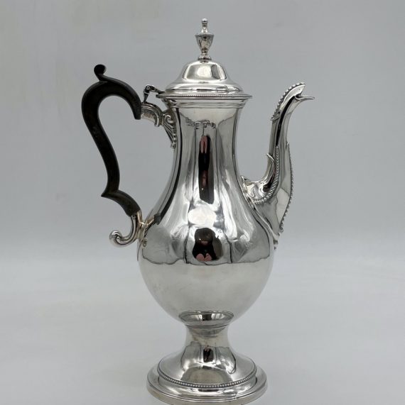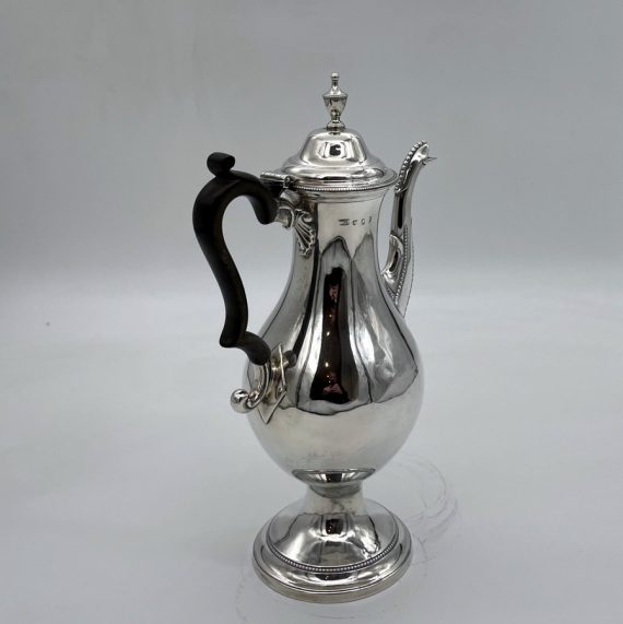 Truly beautiful shaped Hester Bateman Georgian silver coffee pot designed with sumptous curvaceous lines and elegant bead wires for highlights.