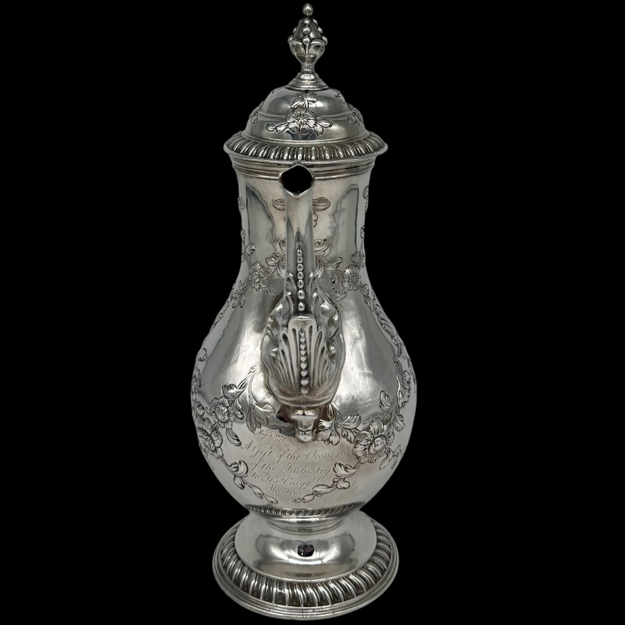 Note: Old Sheffield collectors would love this item. O/S coffee pots replicated this design. Stunningly beautiful forebearer which paved the way for its successful Old Sheffield cousins.