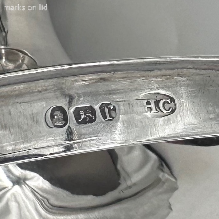 Fine plain formed Georgian silver vase shaped cup and cover decorated with applied reed bands for visual highlights. The centre front and back have different contemporary hand engraved crests presented in elegant cartouches. There are wonderful looping wire handles and the beautiful elongated curvaceous lid rounds of a stunning presentation.