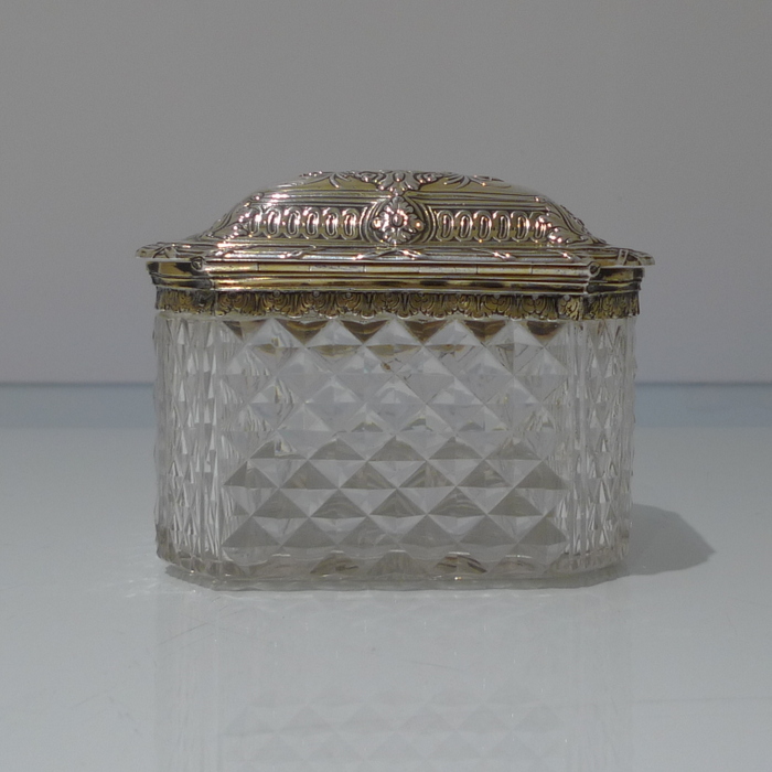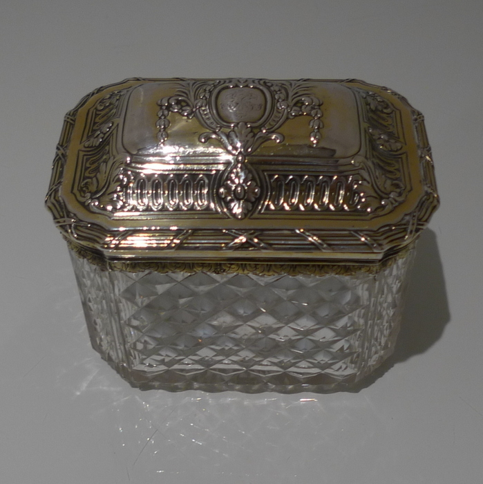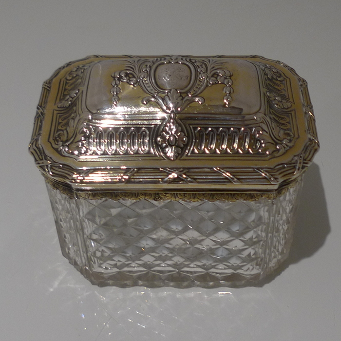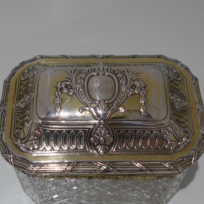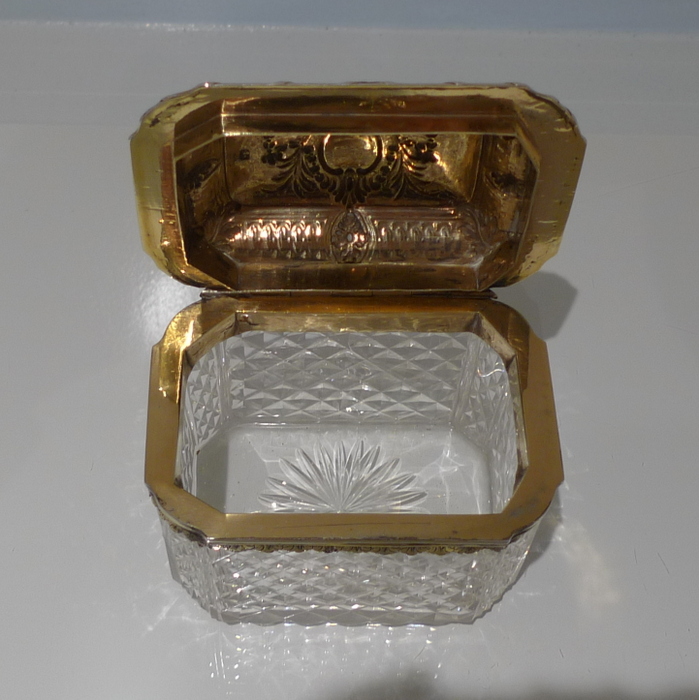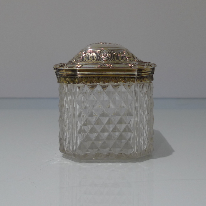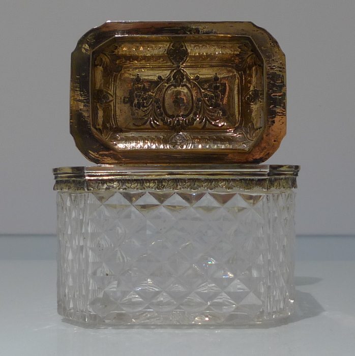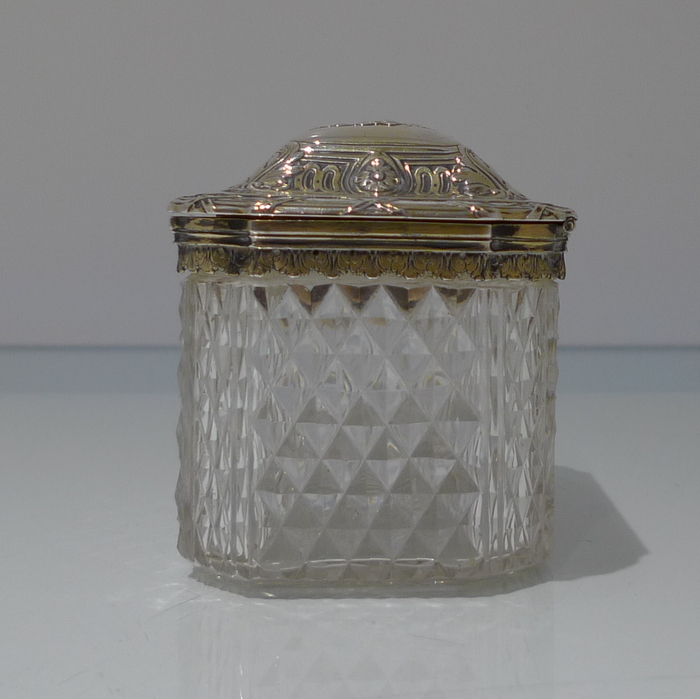 A stunning and incredibly rare silver gilt and hobnail cut crystal Georgian tea caddy. Â The lid is beautifully made and has a stylish central cartouche in which sits contemporary engraved initials for importance.