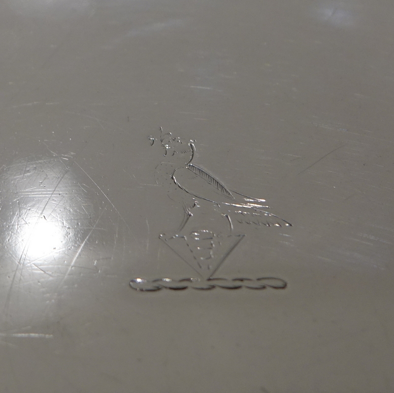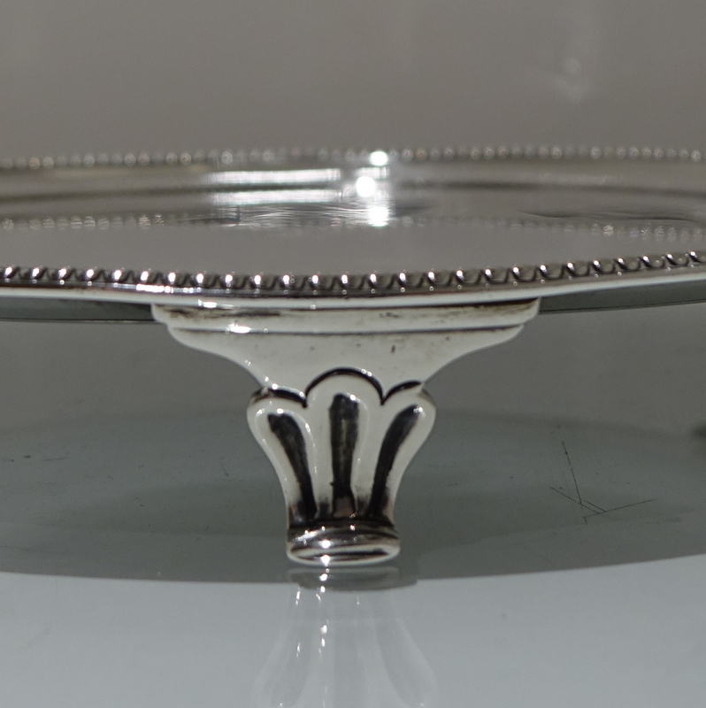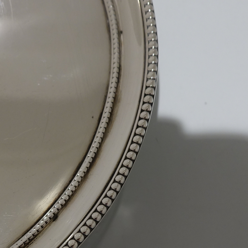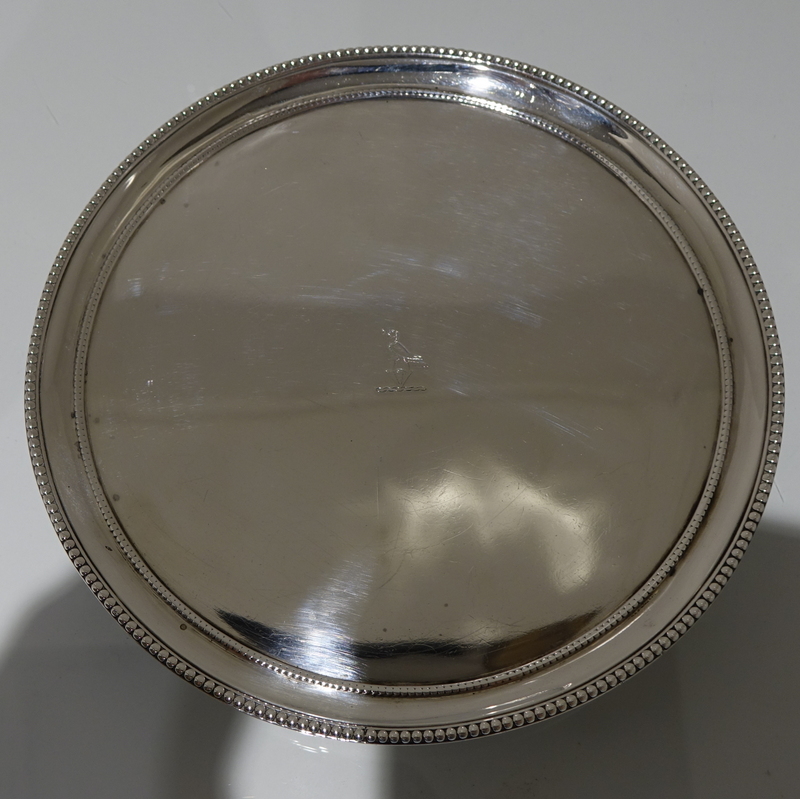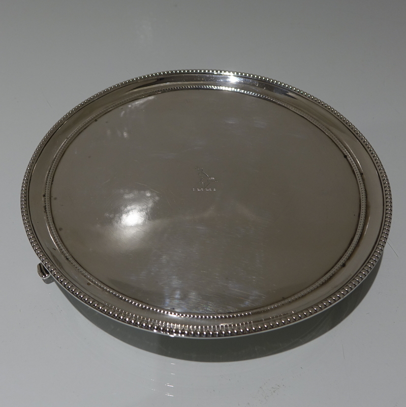 An incredibly beautiful and highly desirable plain formed circular salver with an inner and outer applied bead wire borders for decorative highlights. Â The centre front has a stylish contemporary crest for importance.