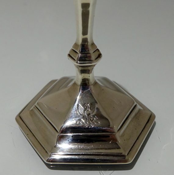 A very fine and incredibly rare early 18th century hexagonal taperstick, plain formed in design and baring a stylishly engraved contemporary crest for importance.