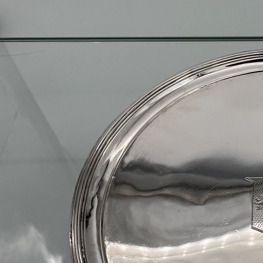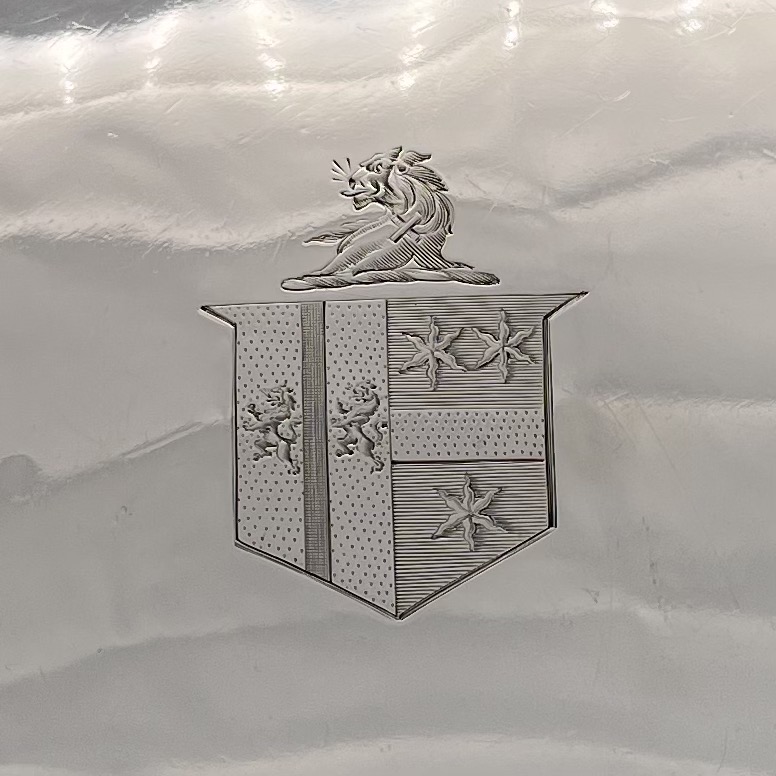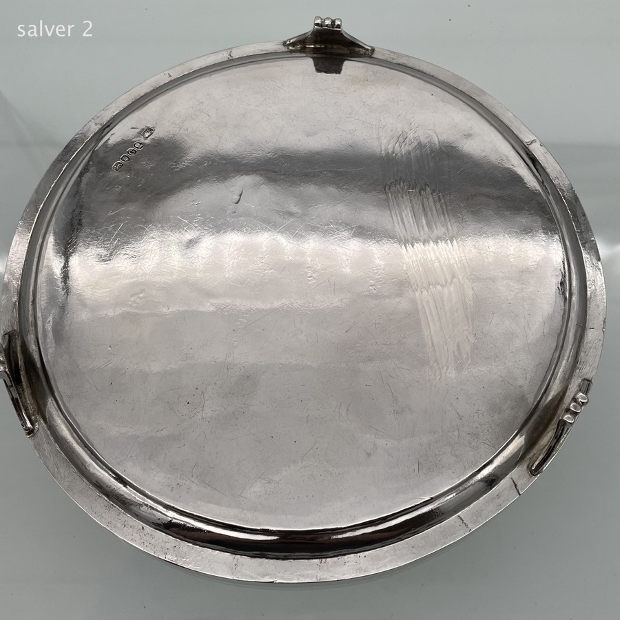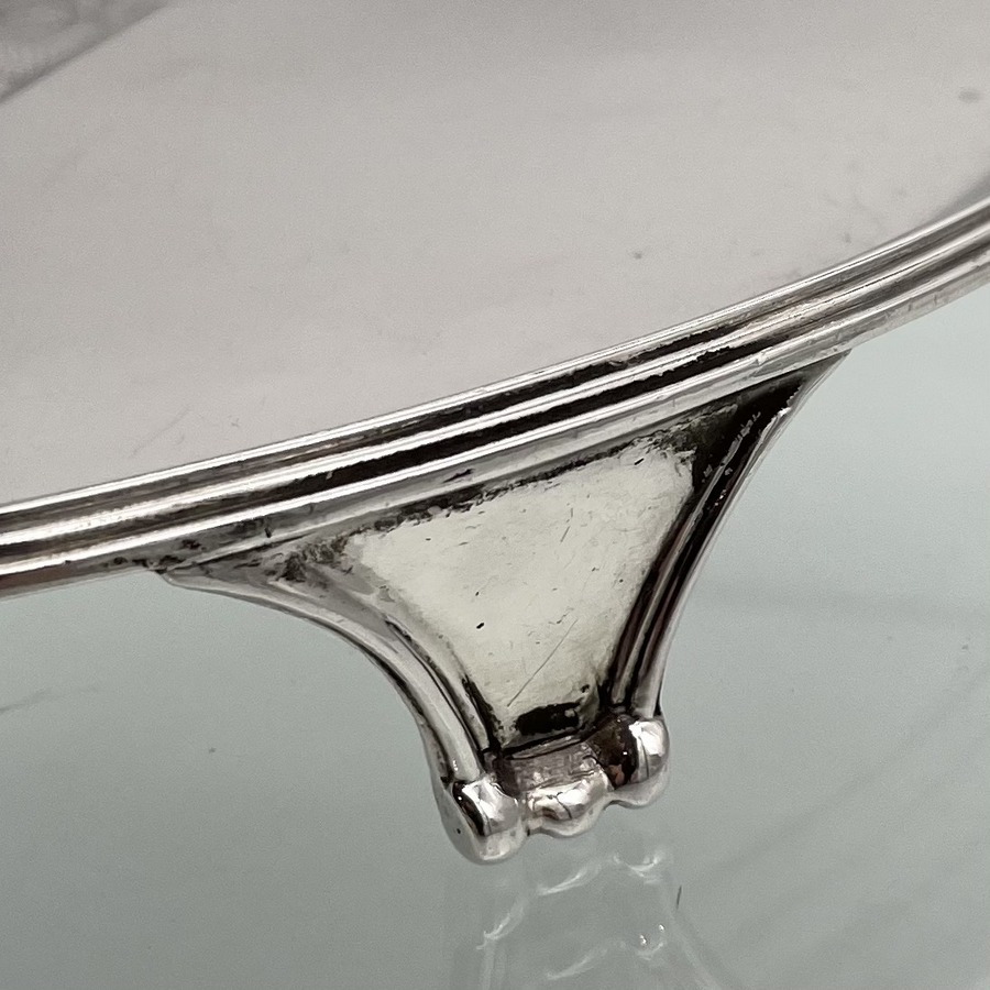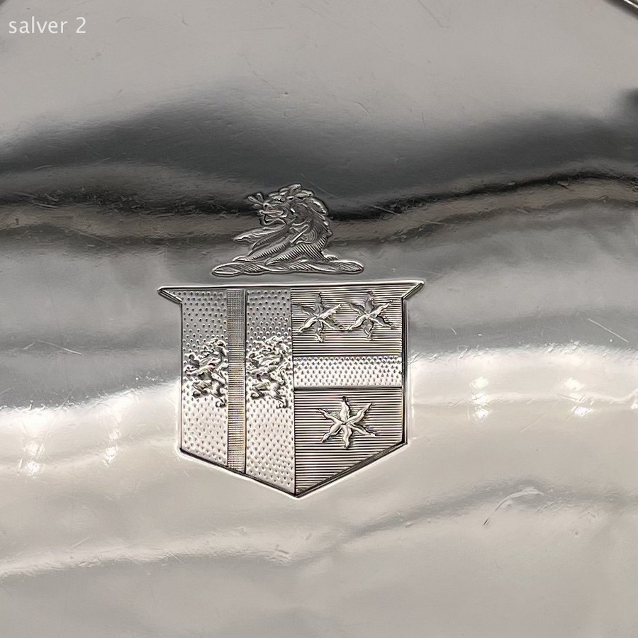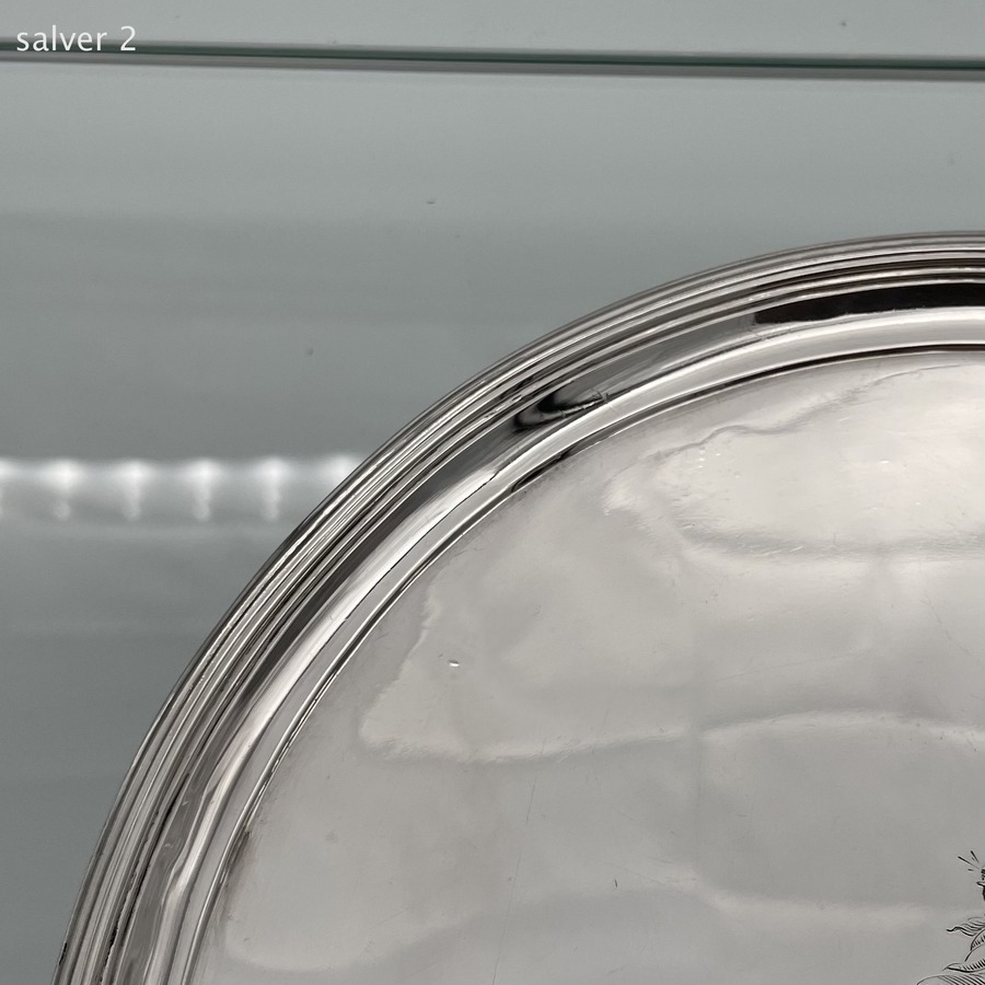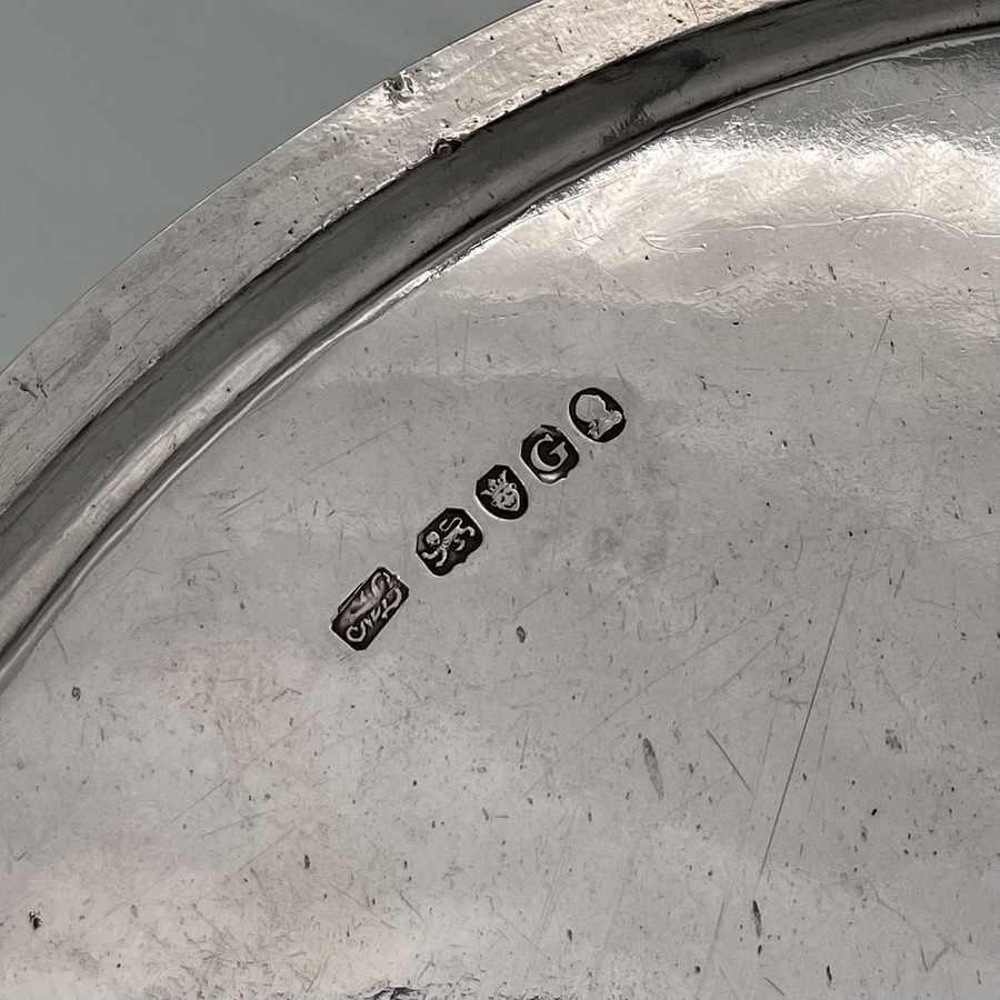A fine pair of circular silver Georgian salvers elegantly plain formed in design and sitting on three tapering scroll toed feet. Â The centre fronts have beautiful contemporary hand engraved armorials (Naylor/Naylour arms impaled with those of Thwaites) for importance.