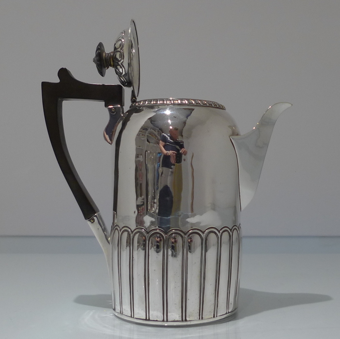 A rare and extremely collectable circular York coffee pot decorated with fine fluted work for lowlights. Â The lids is hinged and has additional fine fluted work for highlights.