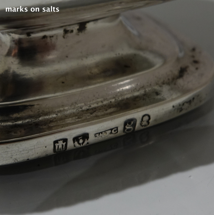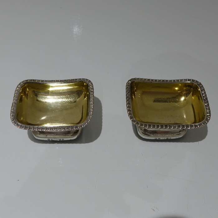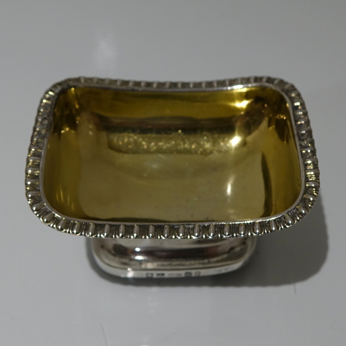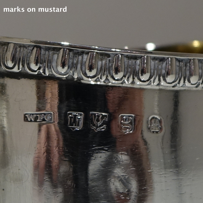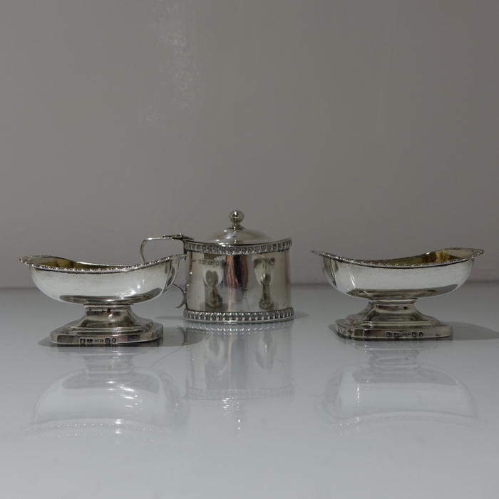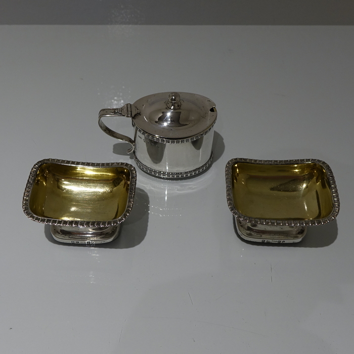 A rare and highly desirable collection of Scottish silver which compromises of a pair of salts and mustard pot. Â The set has decorative applied wire borders for highlights and all pieces have elegant gilded bowls.