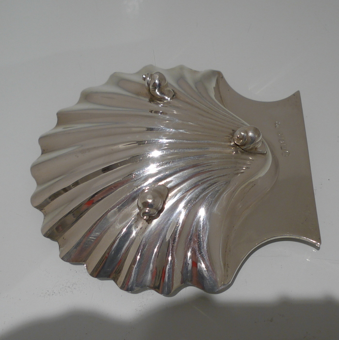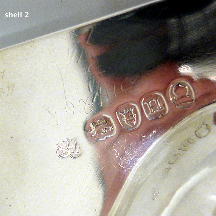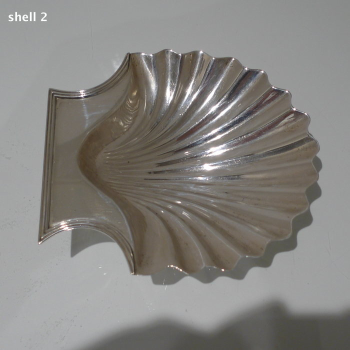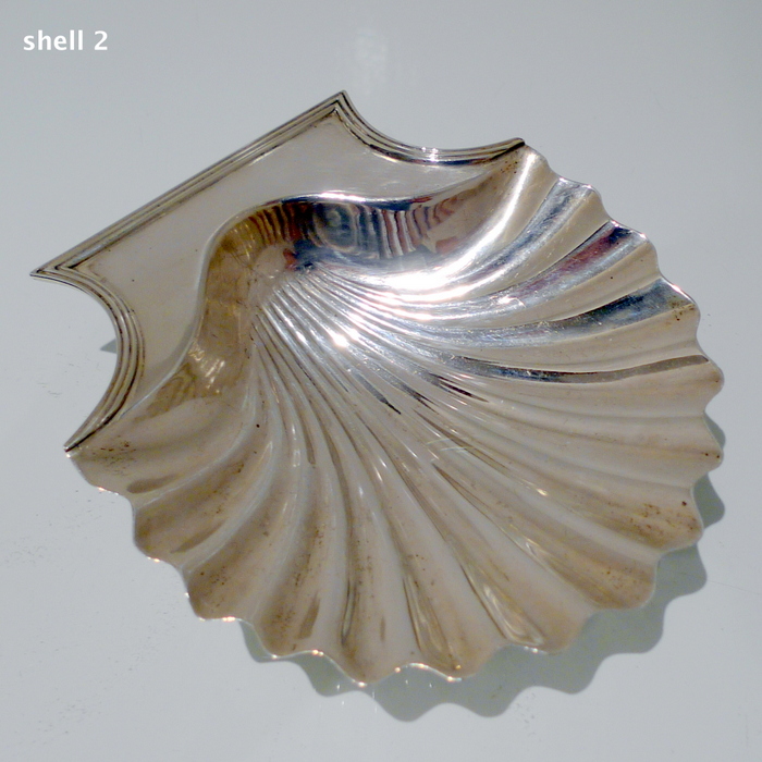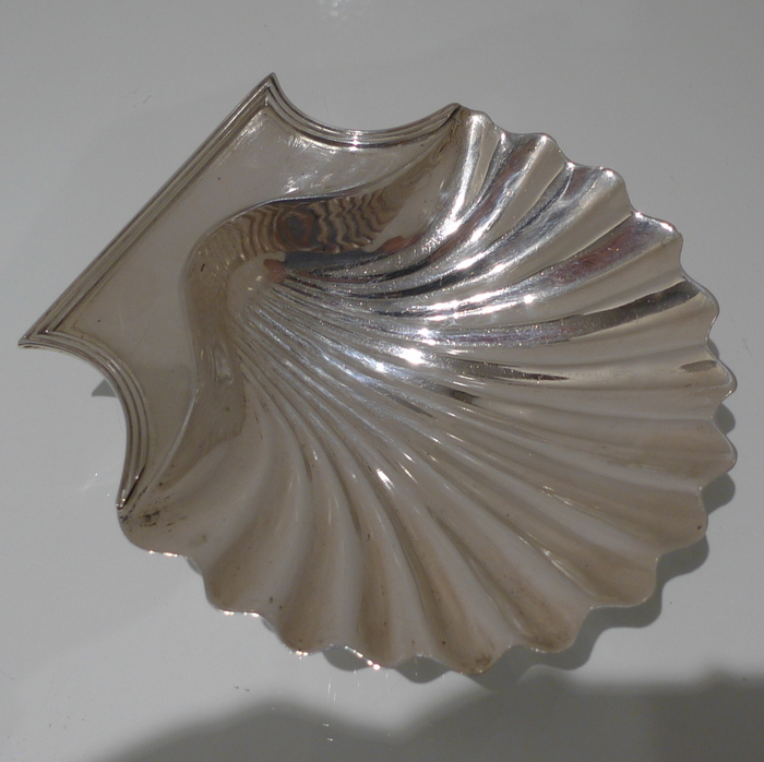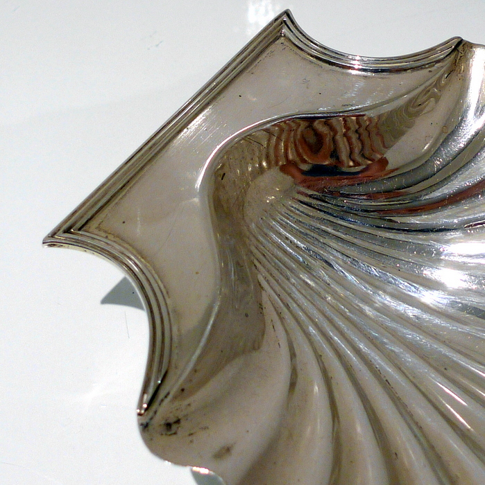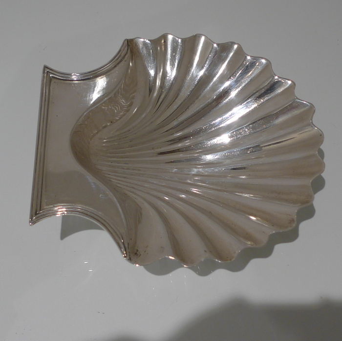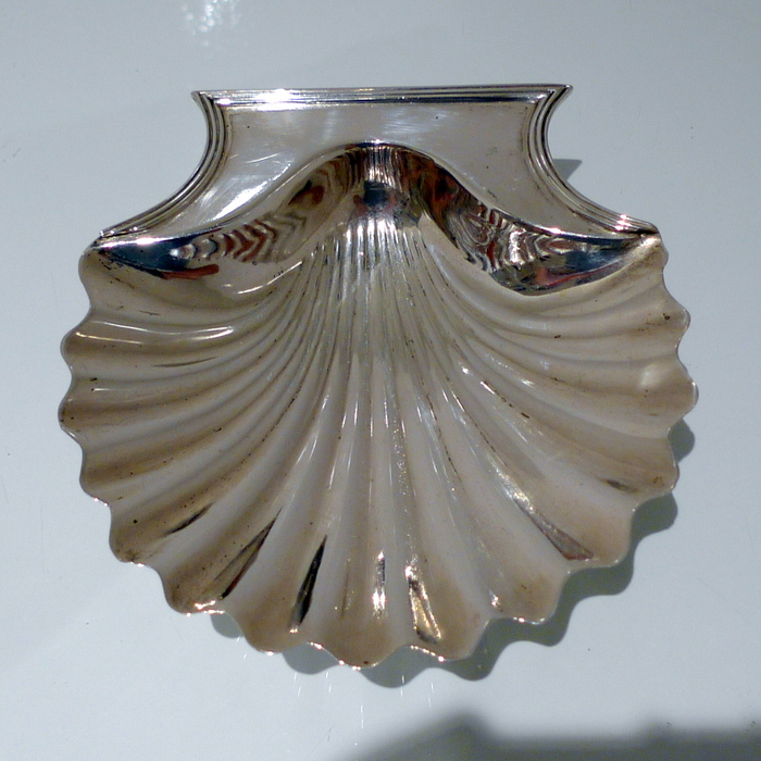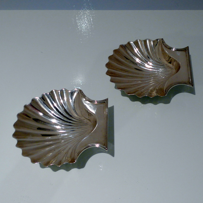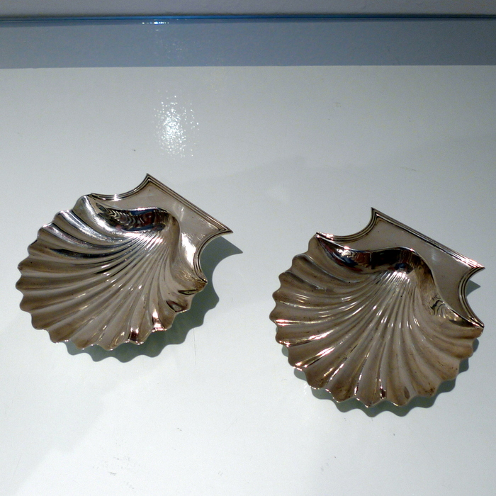 A stylish pair of early 18th century Georgian shell formed butter dishes plain formed in design. Â The bowls are elegantly fluted and the hand grips have an applied reed border wire.