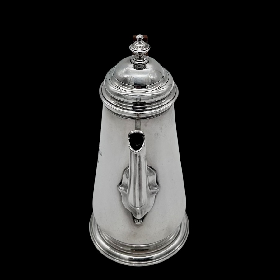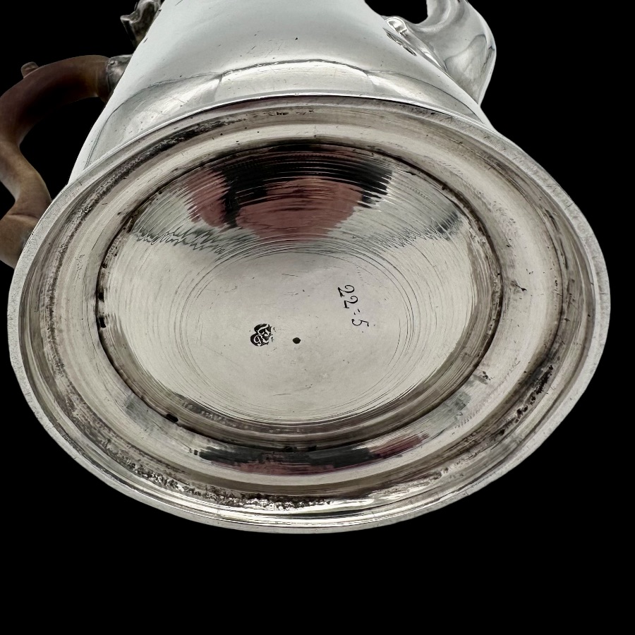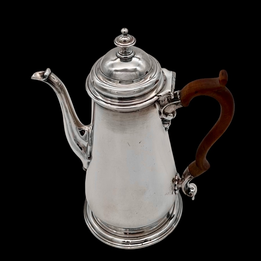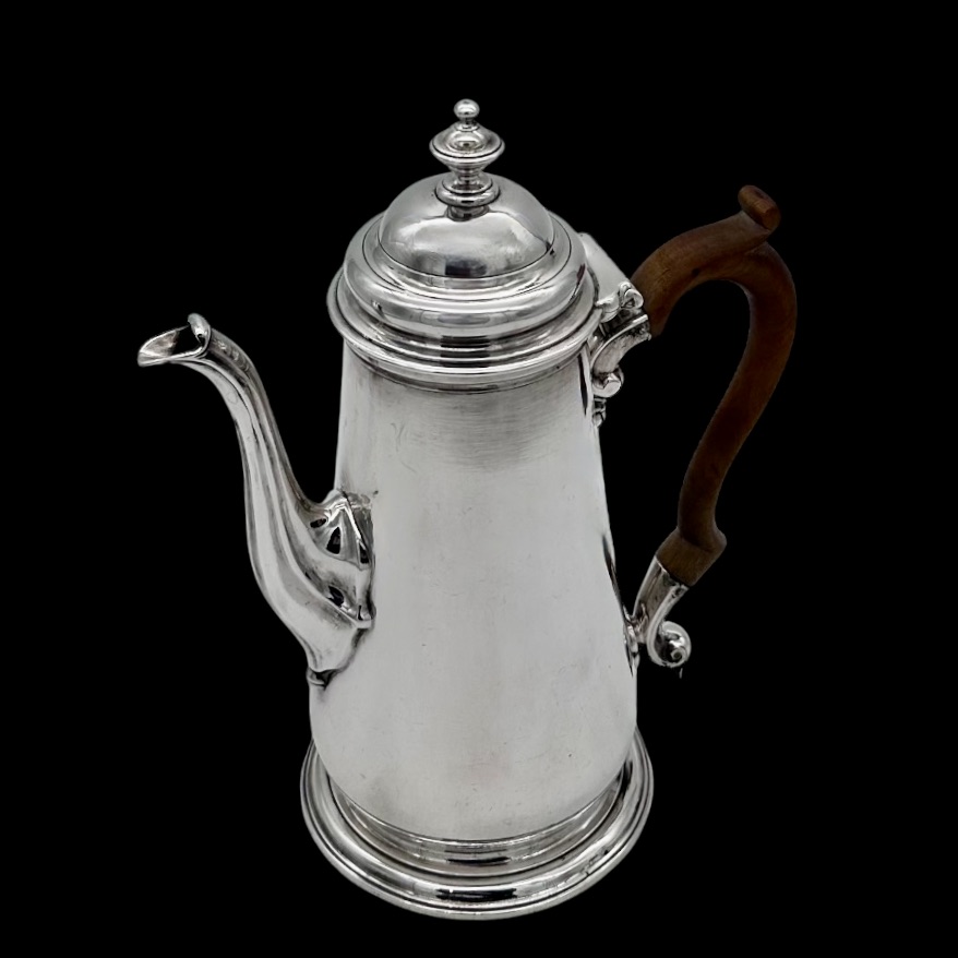 Beautiful mid Georgian silver teapot designed with an elegant tapering body and a stylish double scroll fruitwood handle. There is an original hand engraved crest for decorative visual importance.