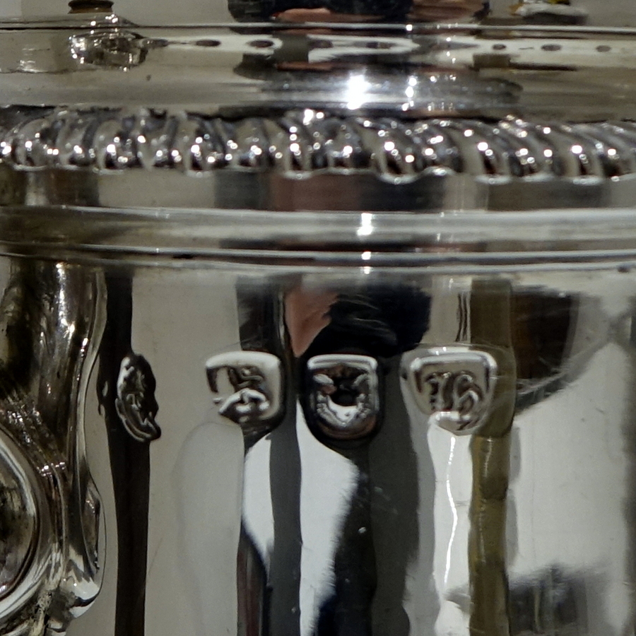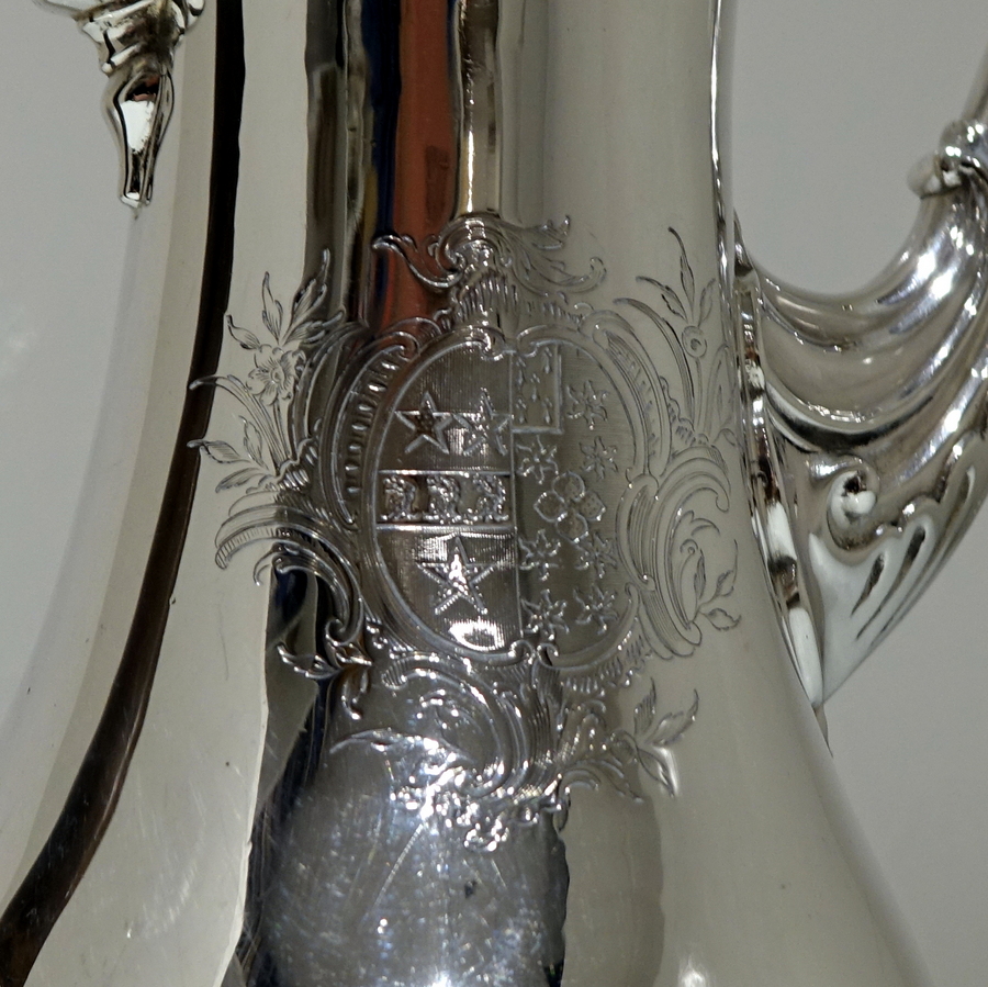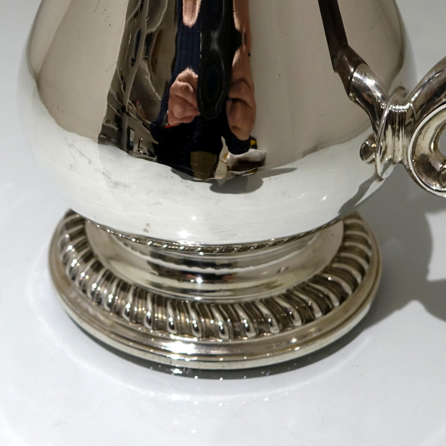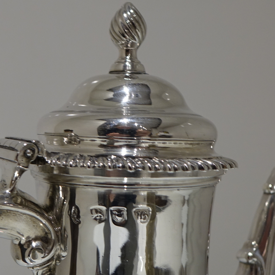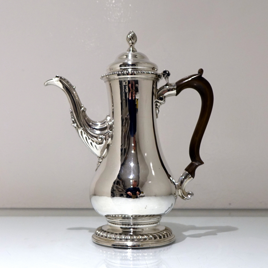 A very beautiful 18th century pear shaped coffee pot decorated with stylish gadrooned mouldings around the lid and the foot. Â The coffee pot has an elegant contemporary engraved armorial (maritial arms of Wright and his Trist wife) for importance.
