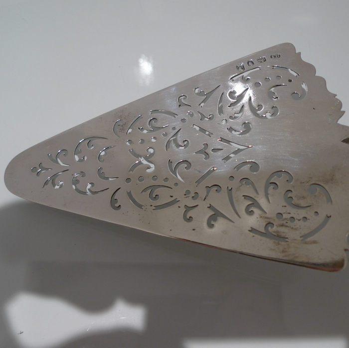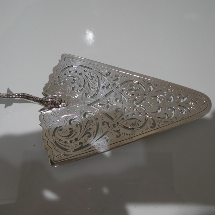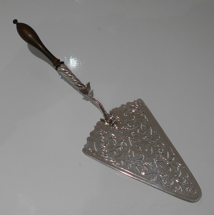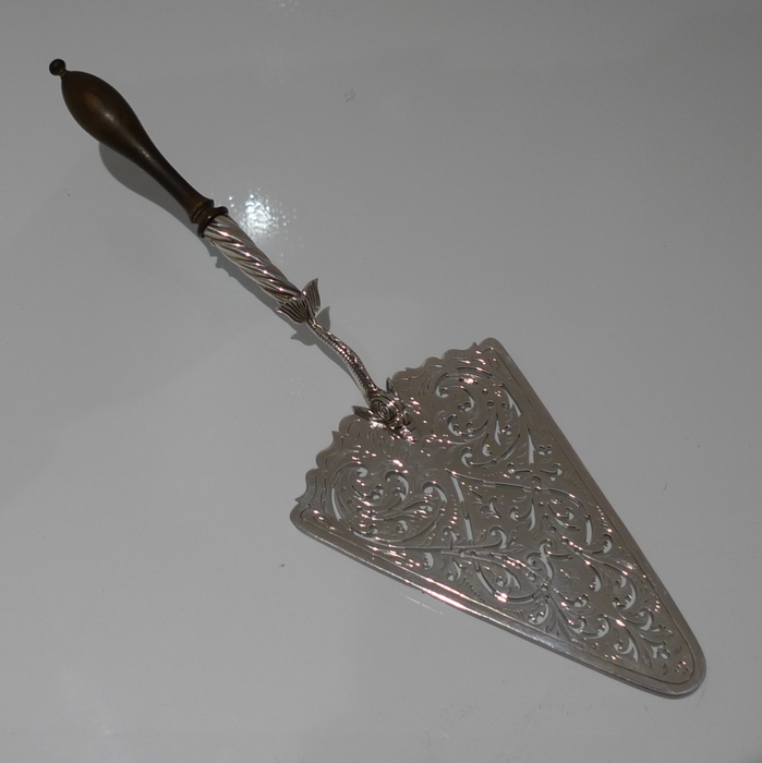 A stunning mid 19th century fish slice elegantly pierced throughout the server. Â The applied fruitwood handle is stylish shaped and fits into a magnificent spiral fluted serpent themed socket.