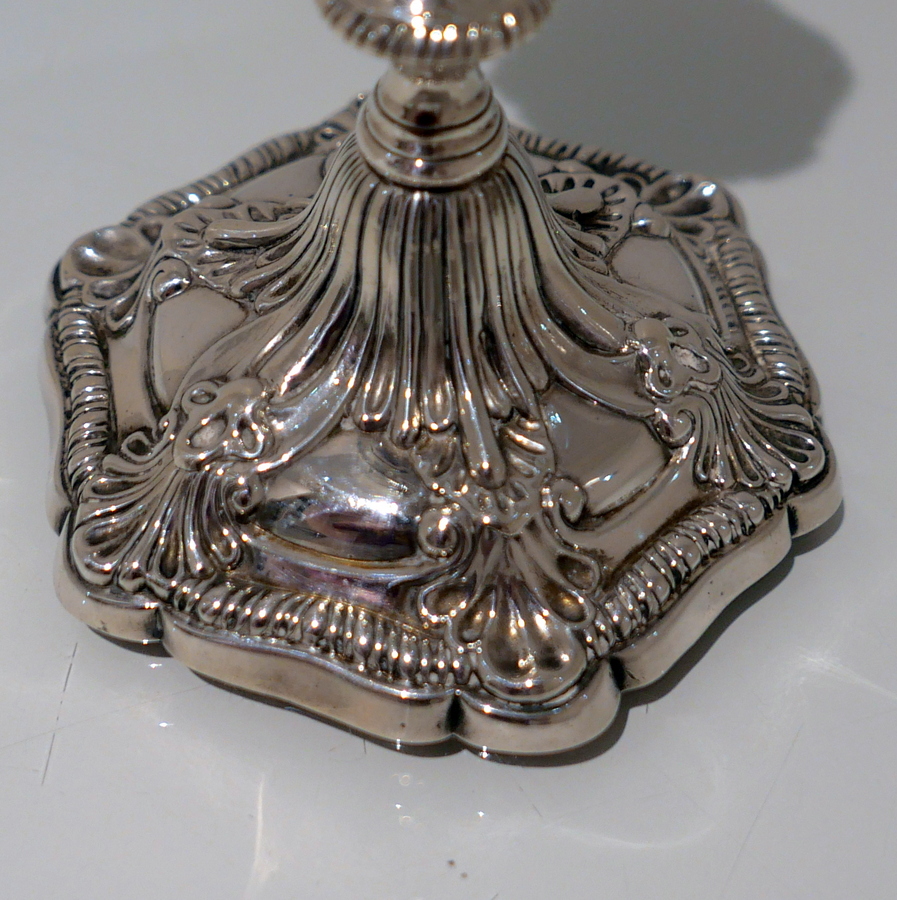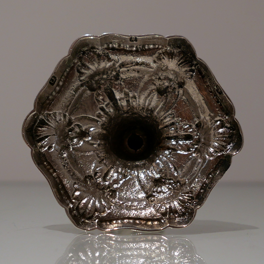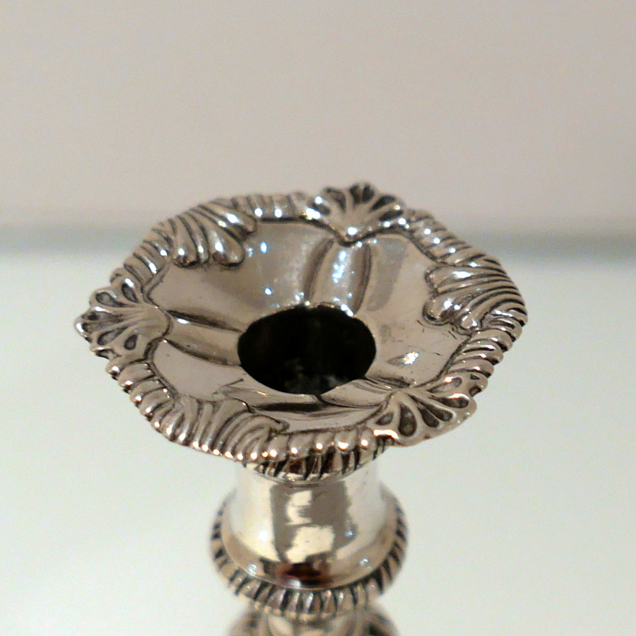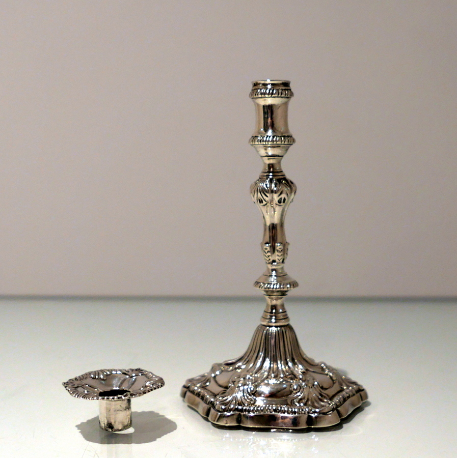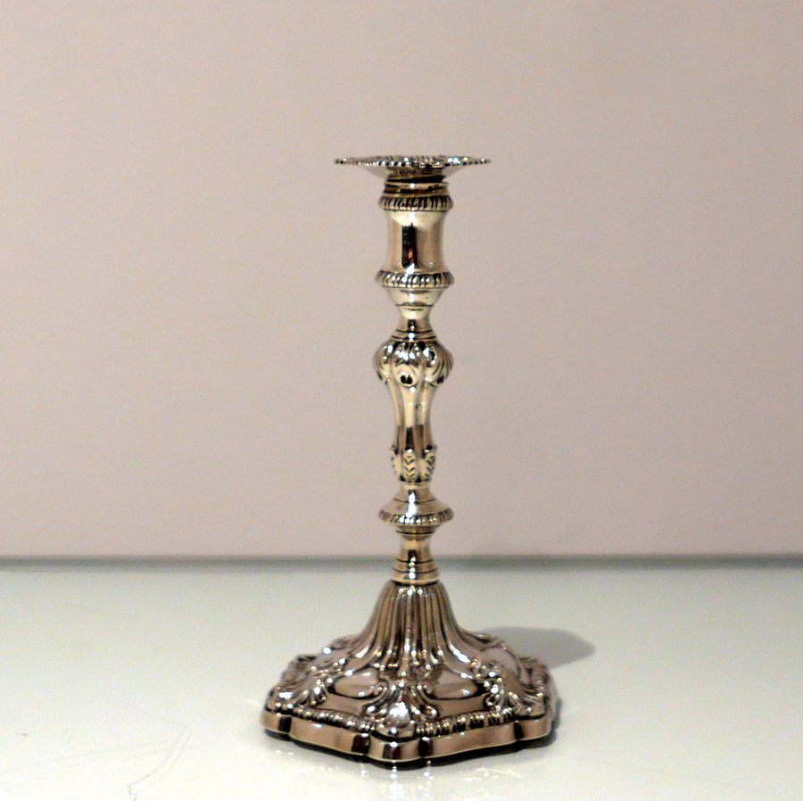 A beautiful and extremely elegant Georgian silver shaped circular taperstick decorated with shell and gadroon borders and a stunningly ornate raised ‘cascading’ lobed foot. The tapering stems and beautifully presented capital showcase the expertise of this candle/taperstick maker.