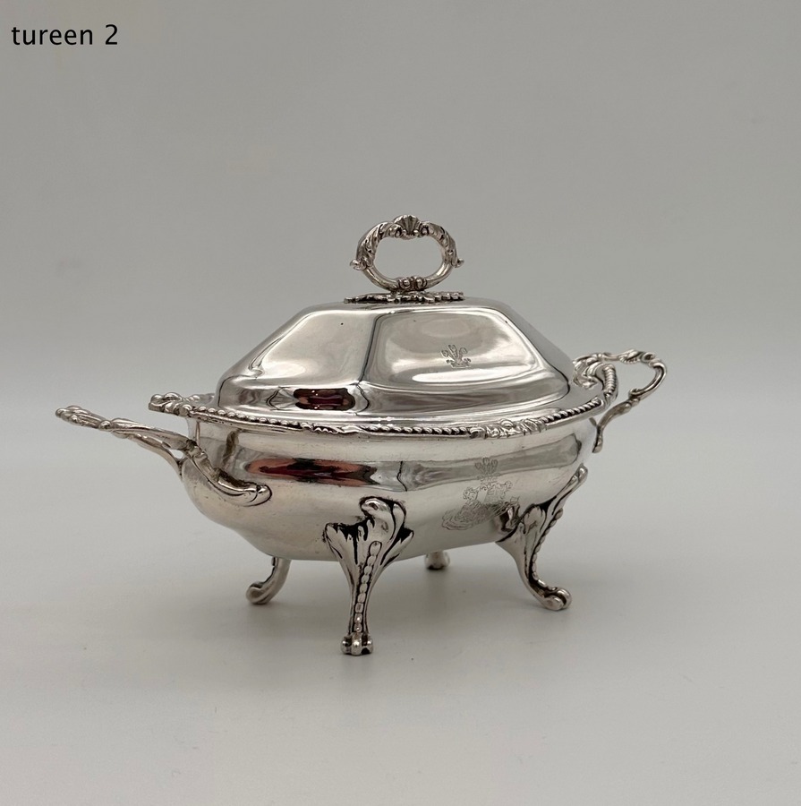 An unusual and extremely rare style of bead border sauce tureens decorated with beautiful floral high/low lights and elegant focal point contemporary double hand enraved armorials (maritial arms of Sir Henry John Lambert, 5th Baronet of London 5th August 1792 – 17 Decemeber 1858 and his wife Anna Maria Foley died 5th Decmeber 1857) for importance. The detachable lids have double crests for additional importance.