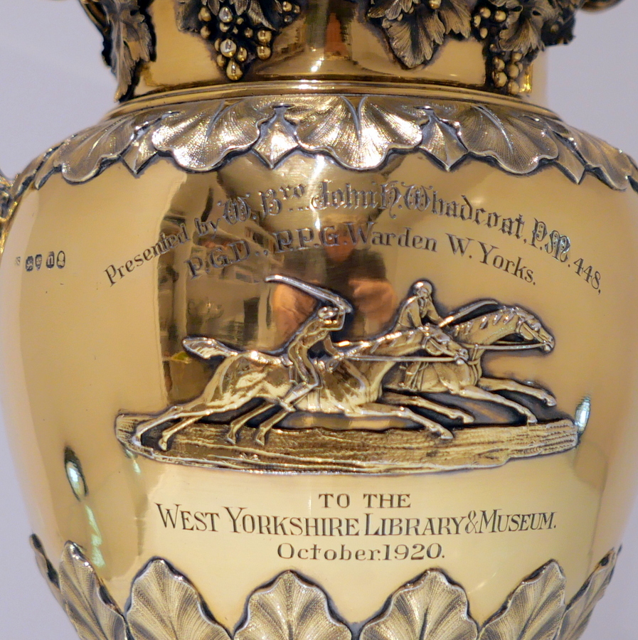 The opposite side reads “Presented by W.Bro John h Whadcoat, P.M 448, P.P.G Warden W. Yorks To The West Yorkshire Library & Museum. Â October 1920”