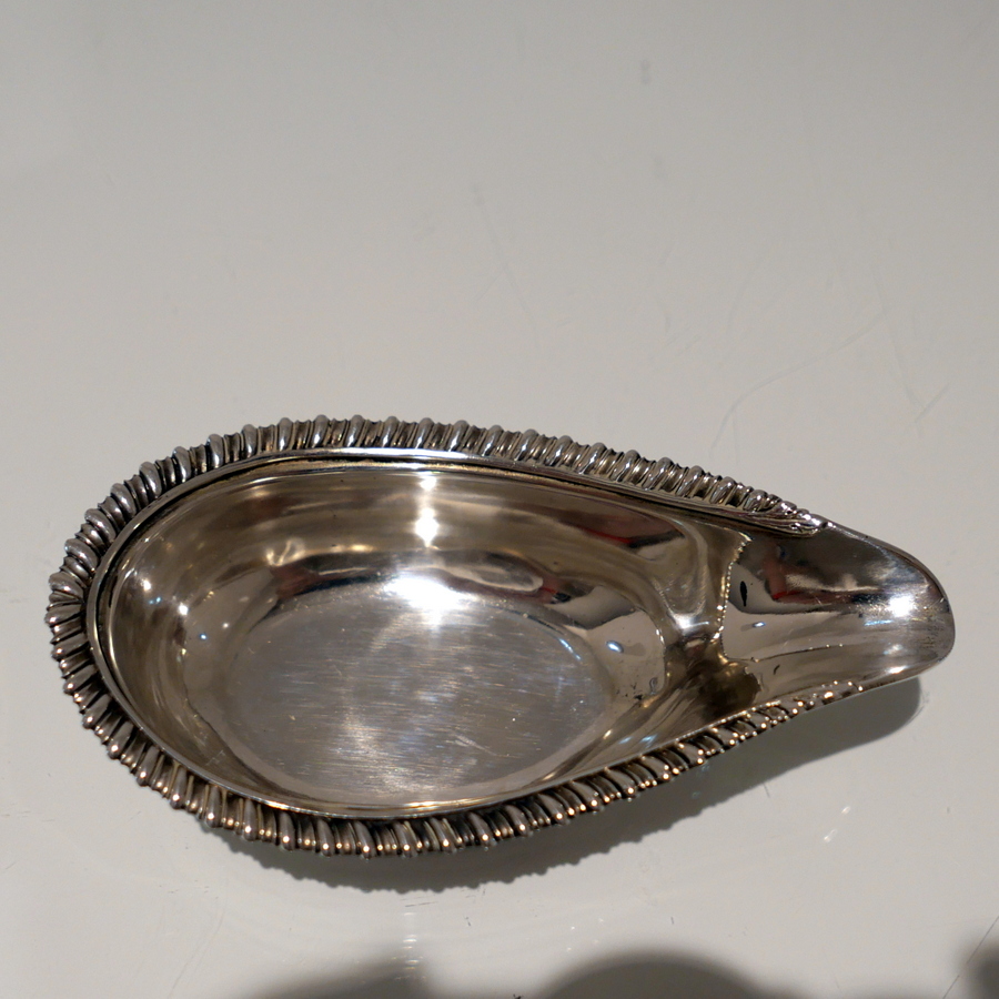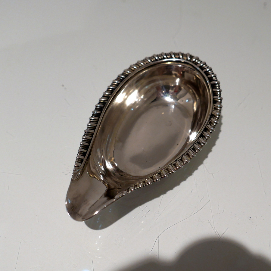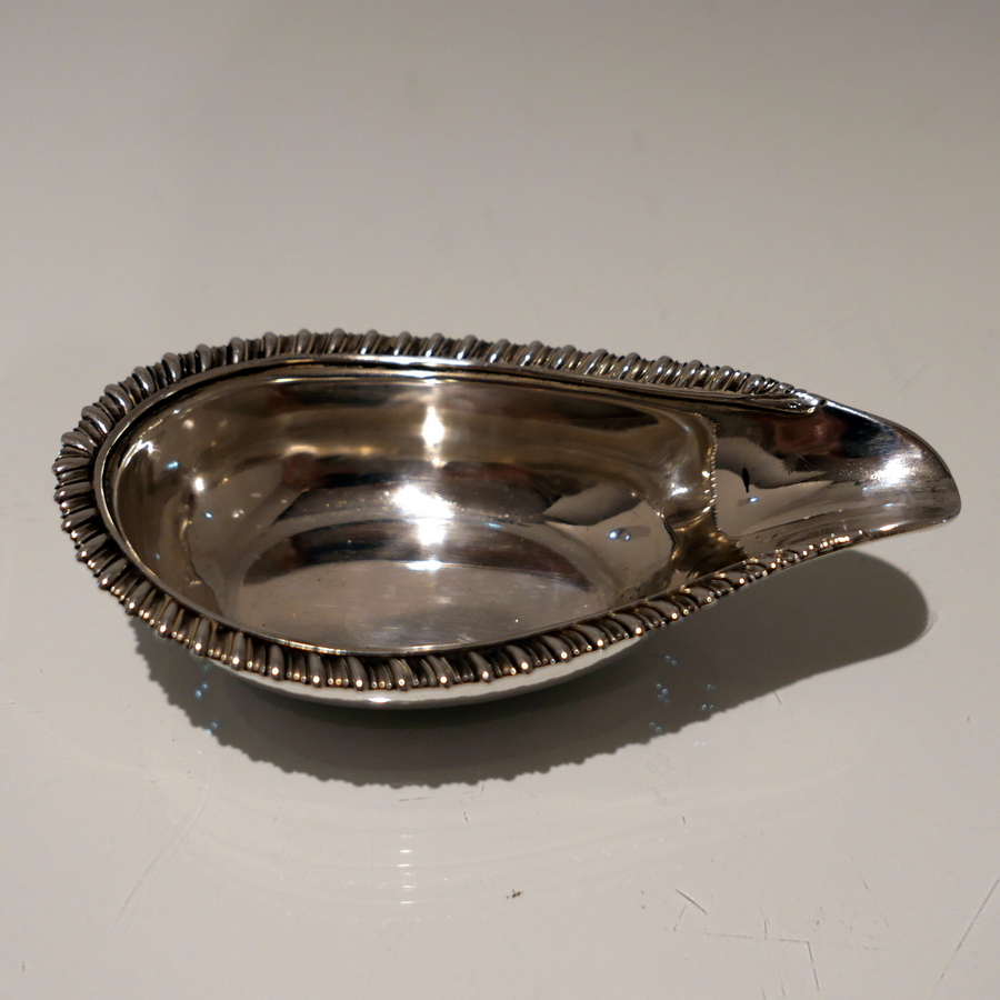 A very fine quality late Georgian sterling silver pap boat decorated with an outer gadroon border.