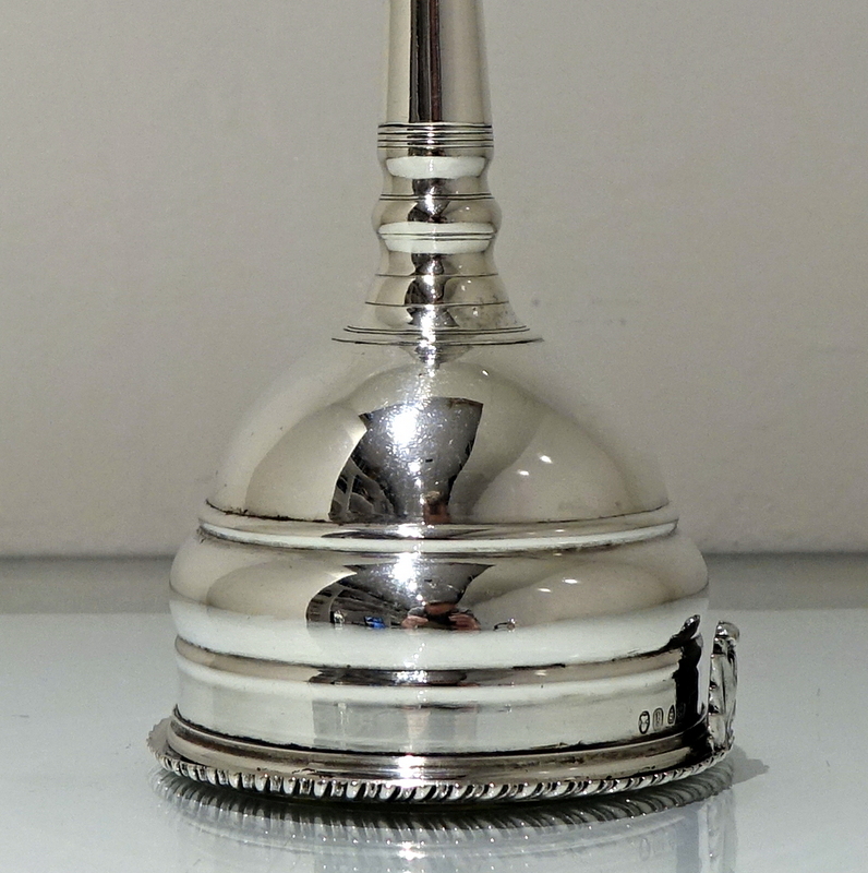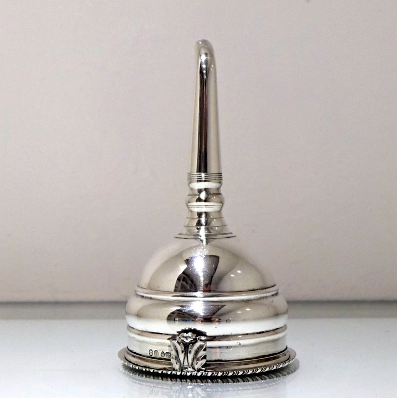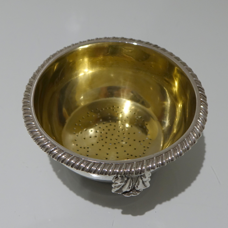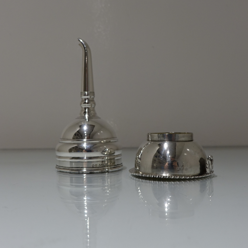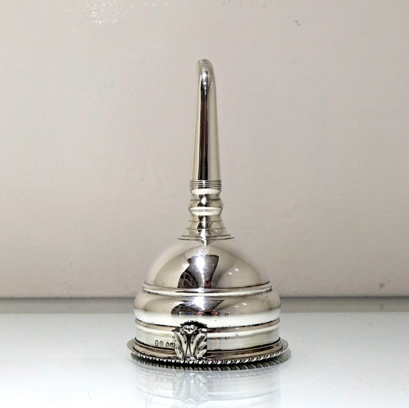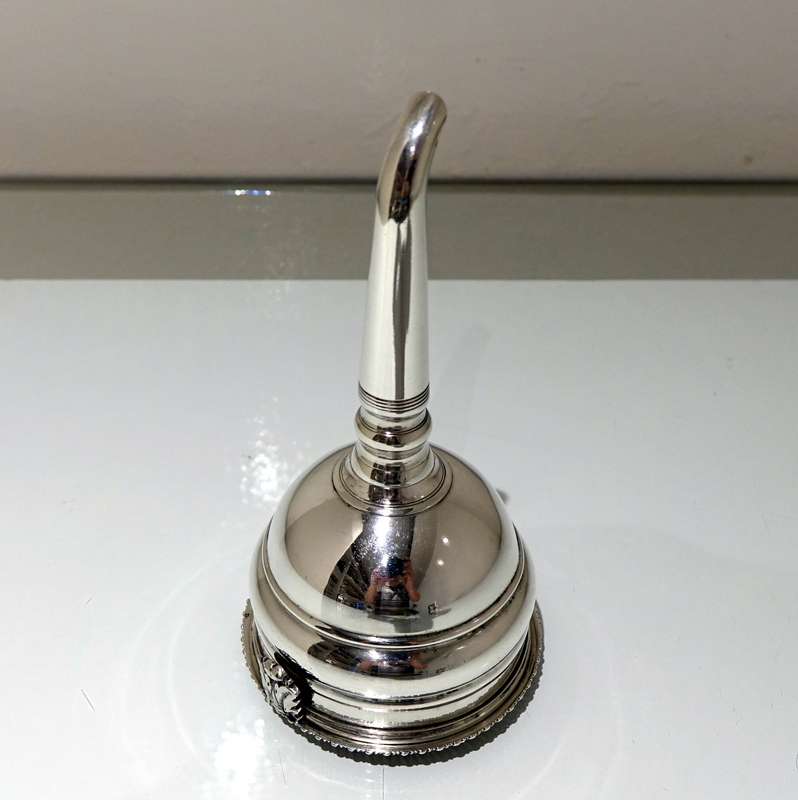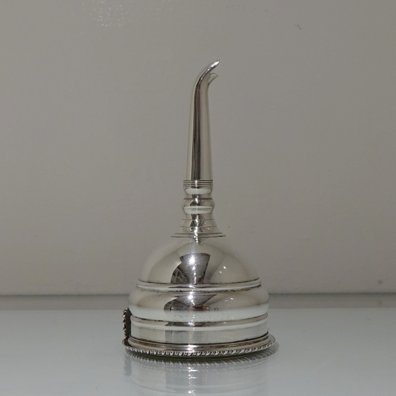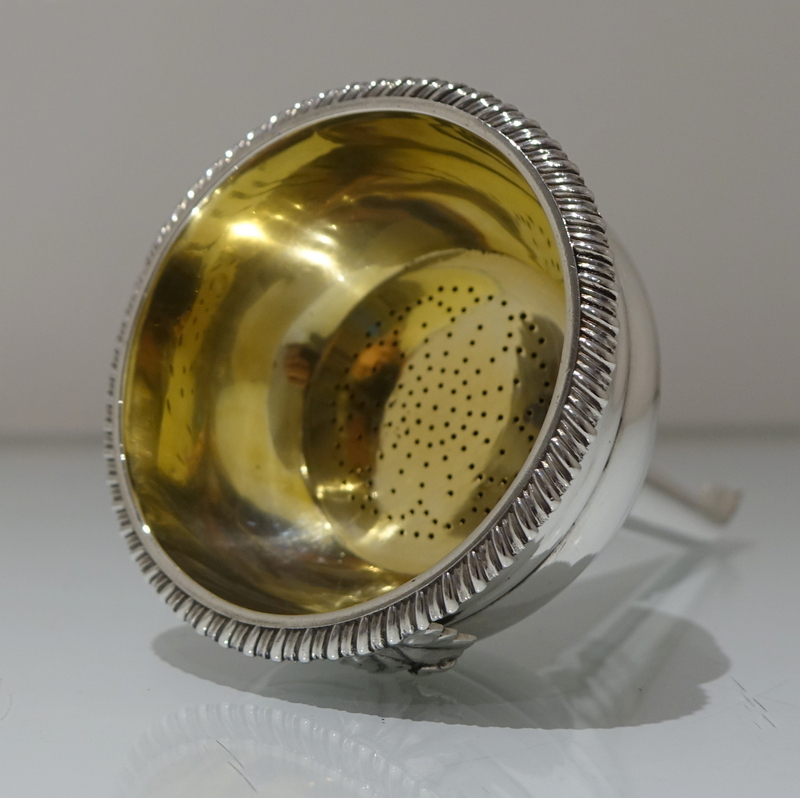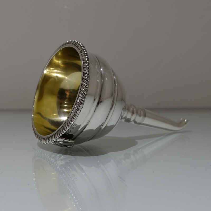 A very fine late Georgian wine funnel decorated with elegant circular mouldings to the bowl and a gadroon border and gilt interior to the strainer.