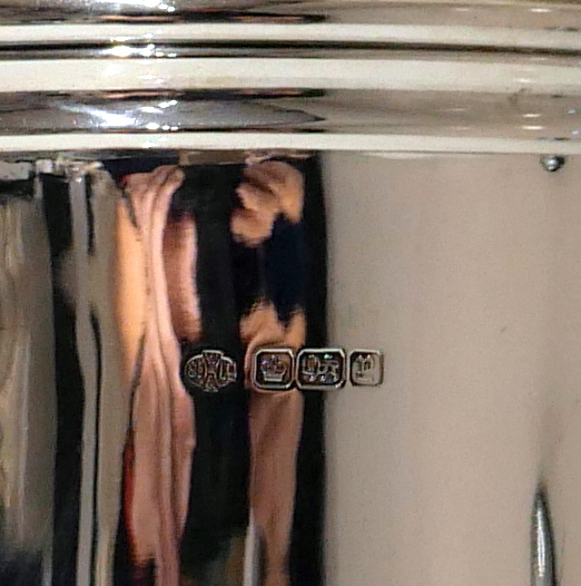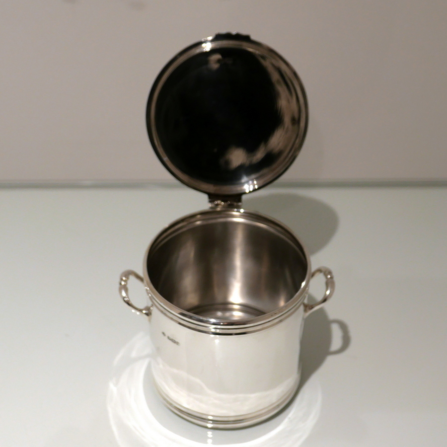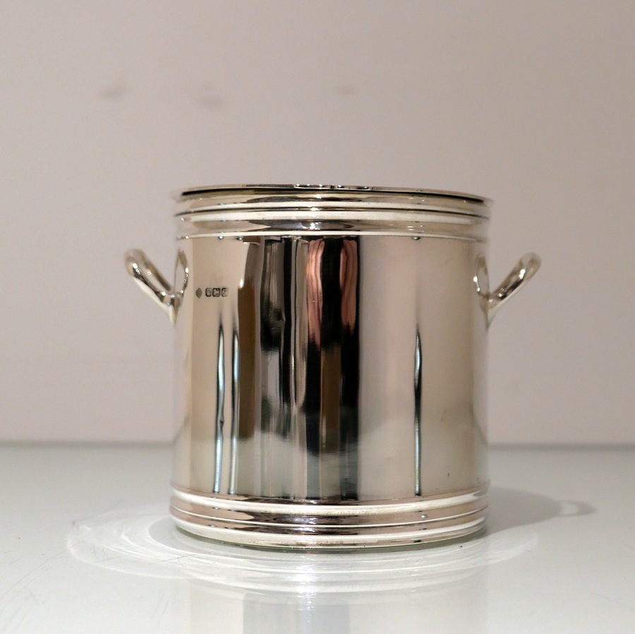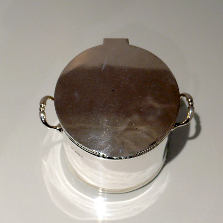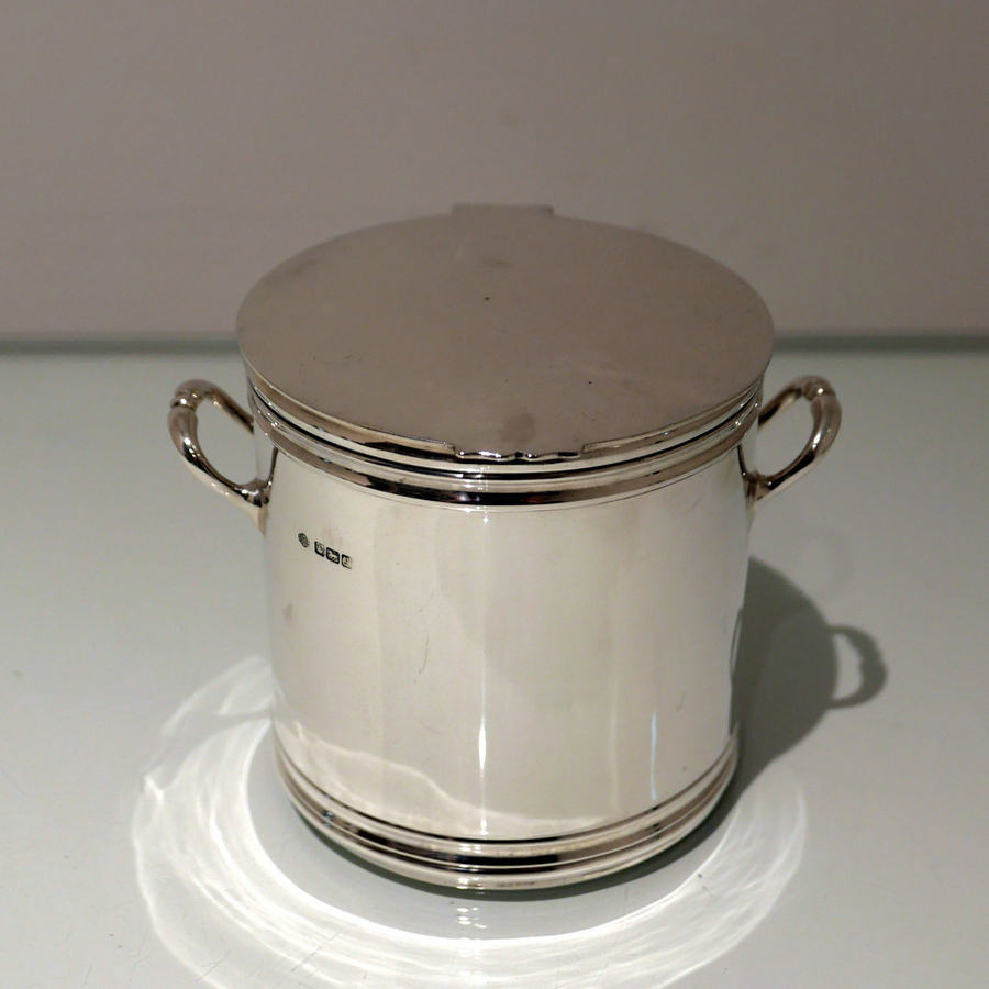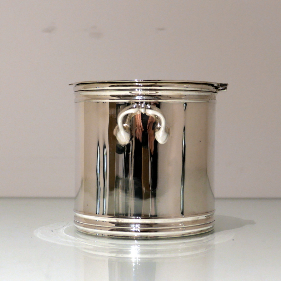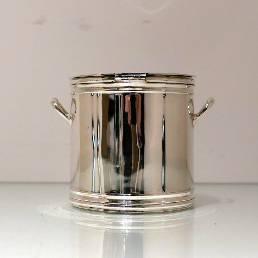 A stylish early 20th century plain formed drum shaped biscuit box designed with elegant upper and lower borders and two beautiful applied handles. Â The lid is hinged.