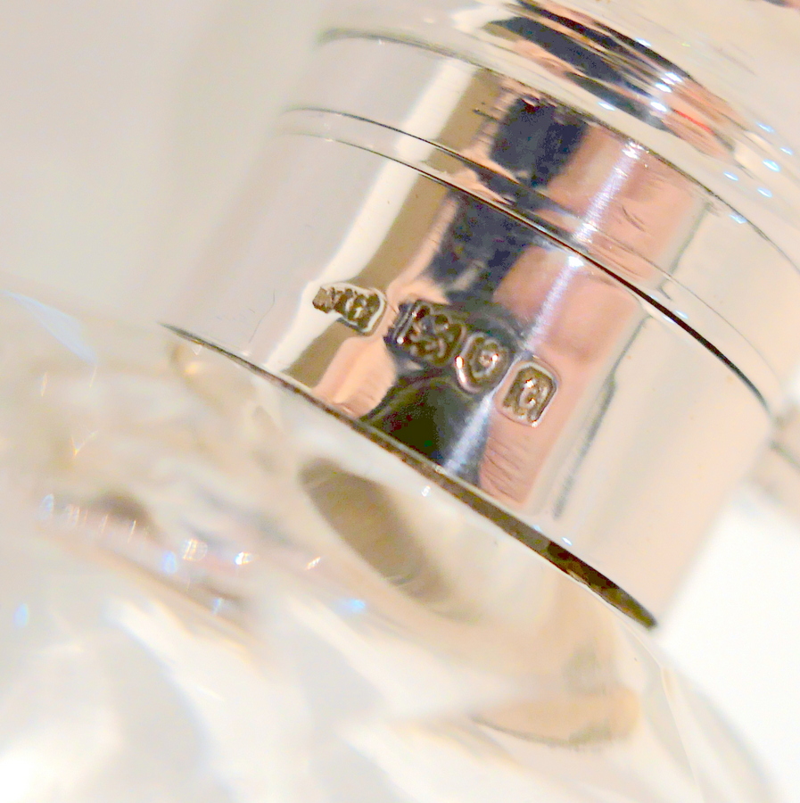 A rare and extremely desirable silver and glass antique George V hip flask, elegantly plain formed in design with a detachable snuggly fitting slotted beaker.  The lid is hinged and has a bayonet locking mechanism.