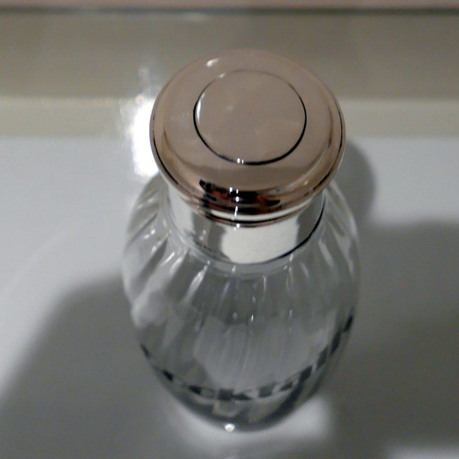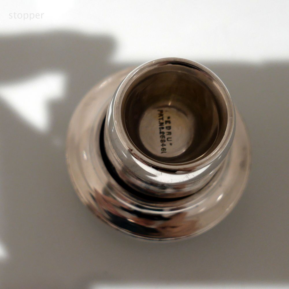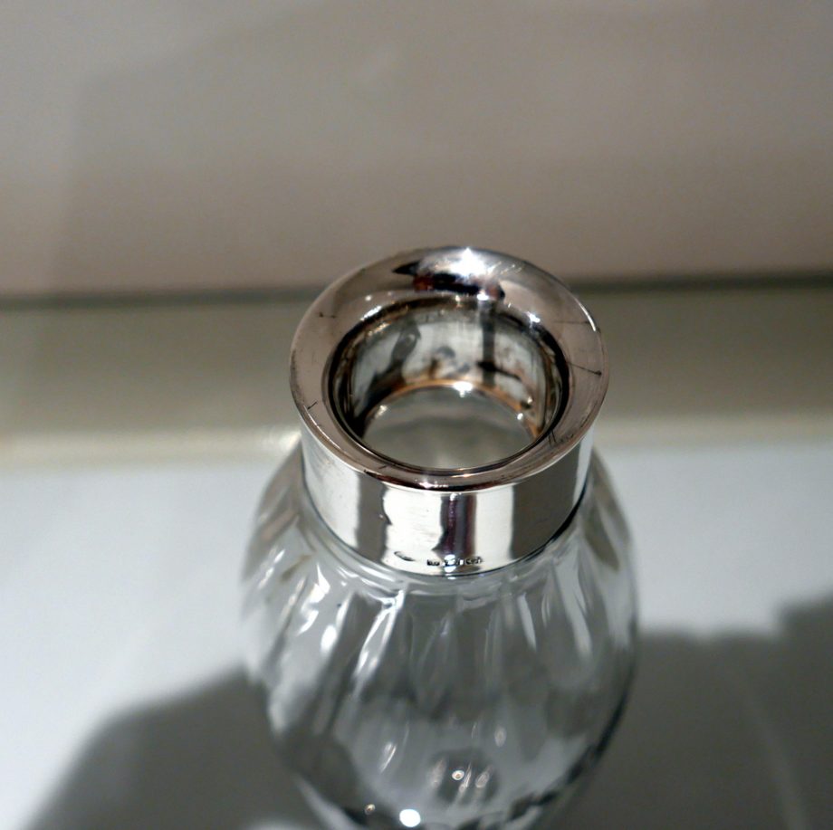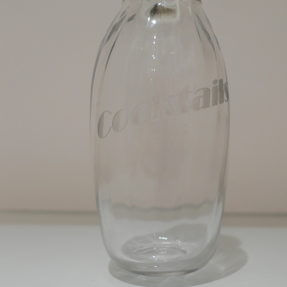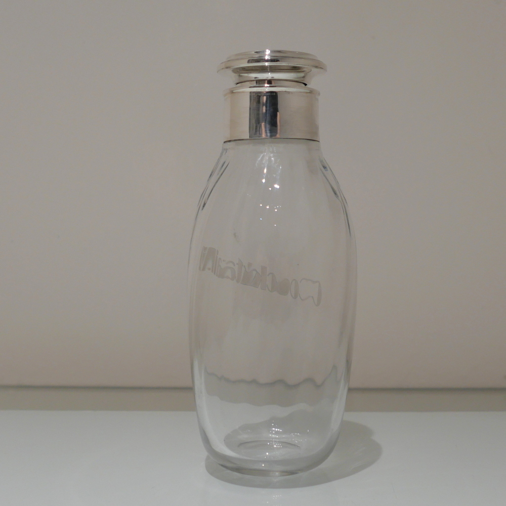 A stylish early 20th century art deco silver and glass cocktails shaker. Â The silver neck is plain formed in design and has a “pull off” deco style stopper. Â The clear blown glass bowl has “cocktails” elegantly etched into the centre front.