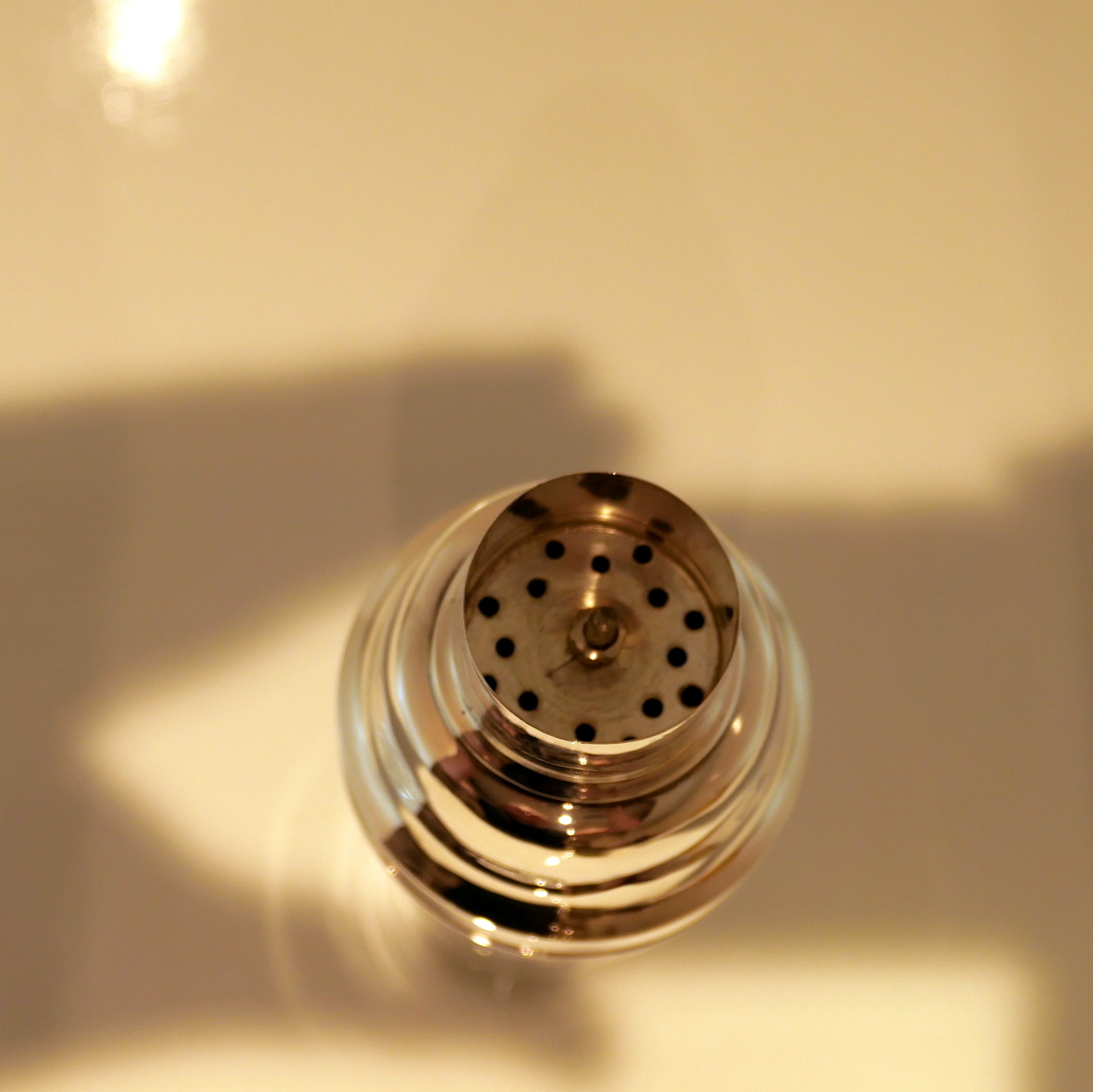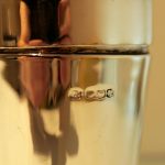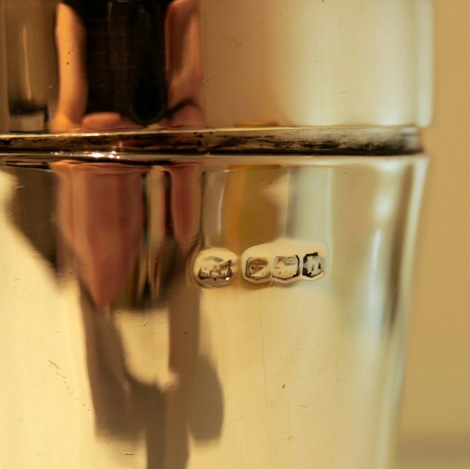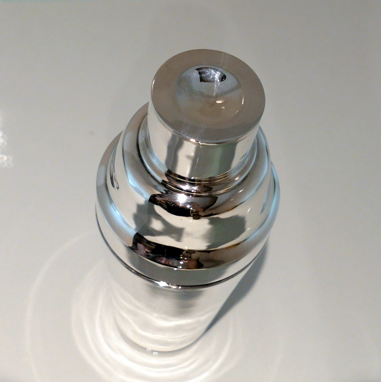 A stylish and highly desirable George V silver three sectioned plain formed cocktail shaker. Â There is a very unusual silver wire strainer insert in order for easy pouring.
