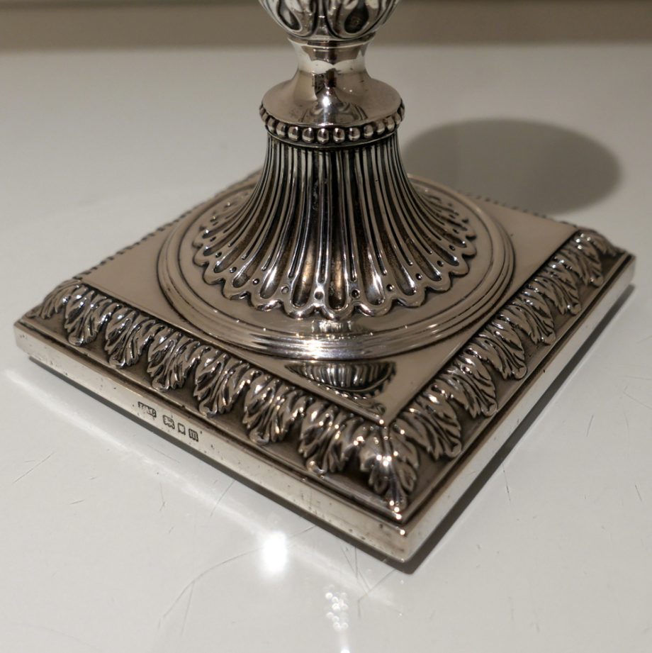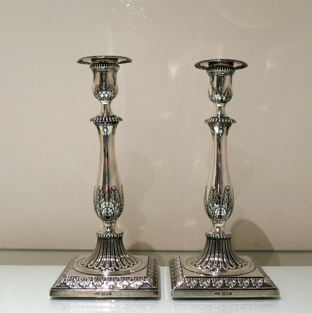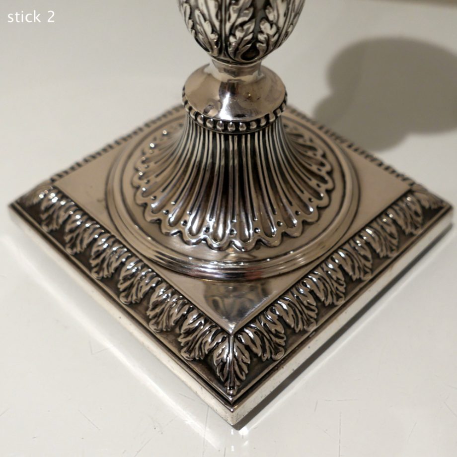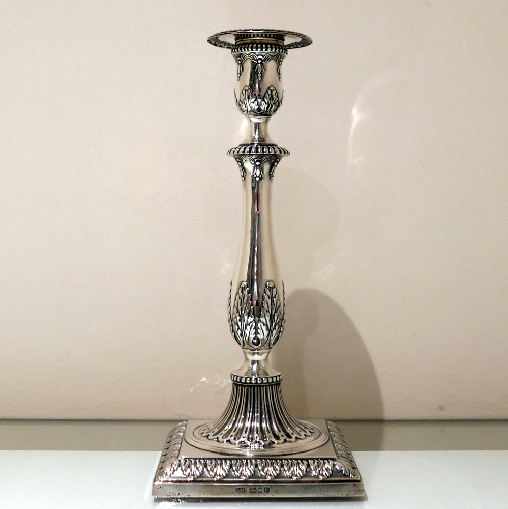 A truly magnificent pair of modern copied square based 18th century style candlesticks elegantly decorated with a superb mix of plain and ornate designs.