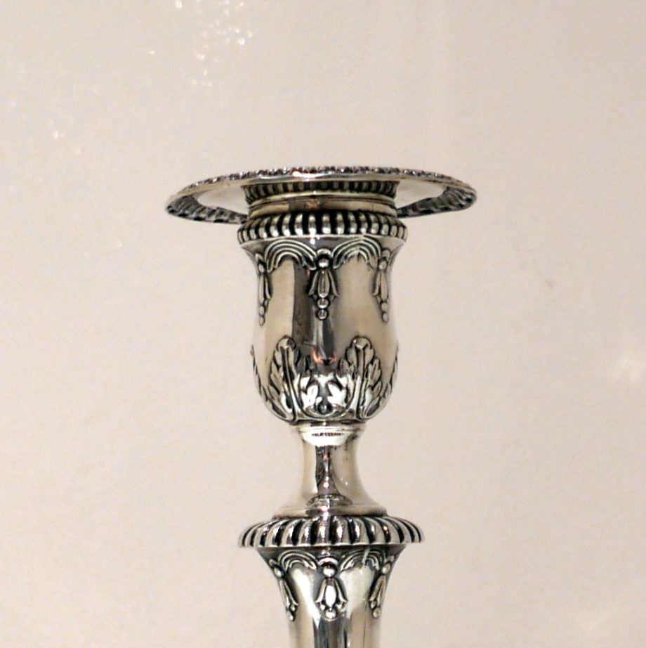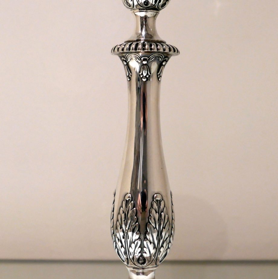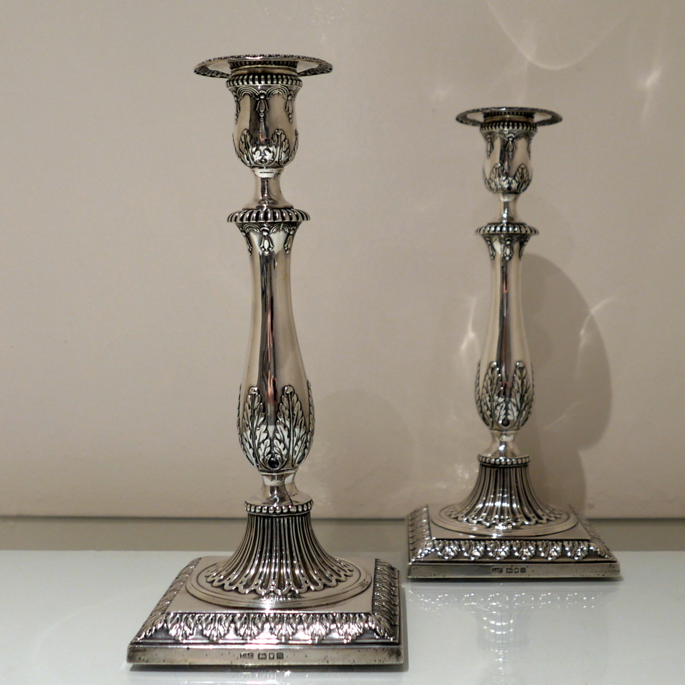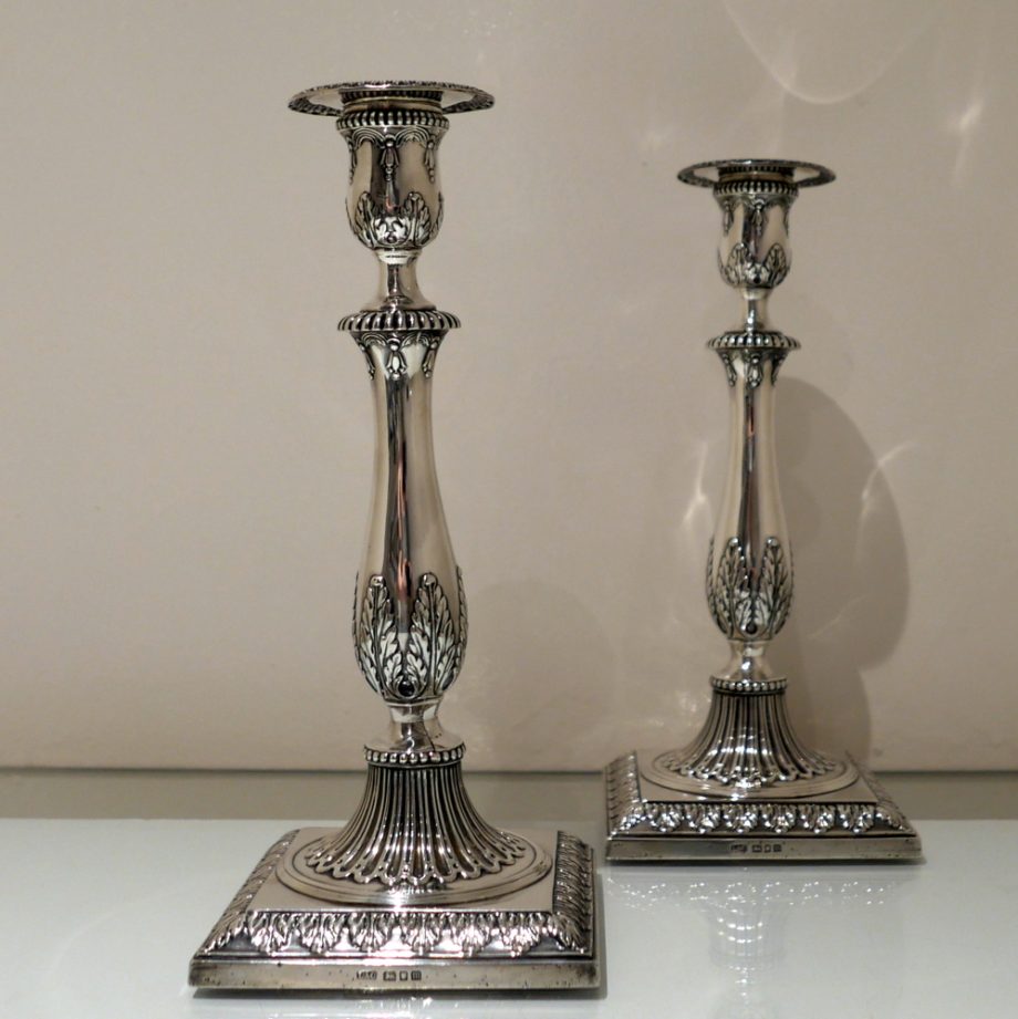 A truly magnificent pair of modern copied square based 18th century style candlesticks elegantly decorated with a superb mix of plain and ornate designs.