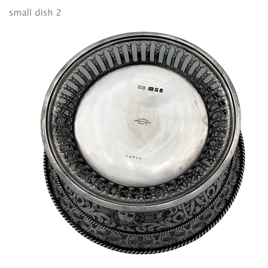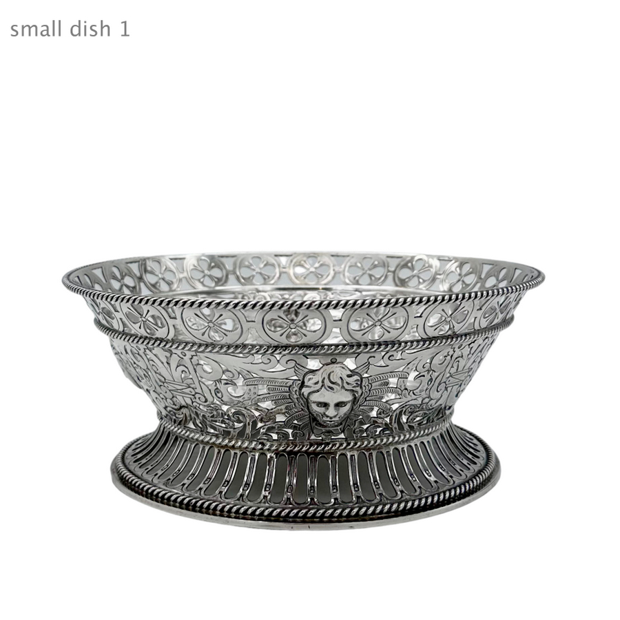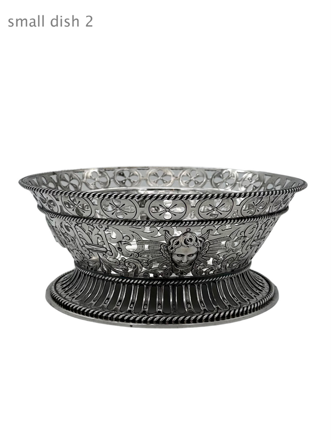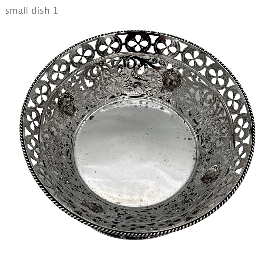 Truly spectacular suite three tapering circular silver dishes designed with faboulous piercings which are beautiful highlighted by rope borders. The suite has a large central dish and two smaller accompanying dishes.