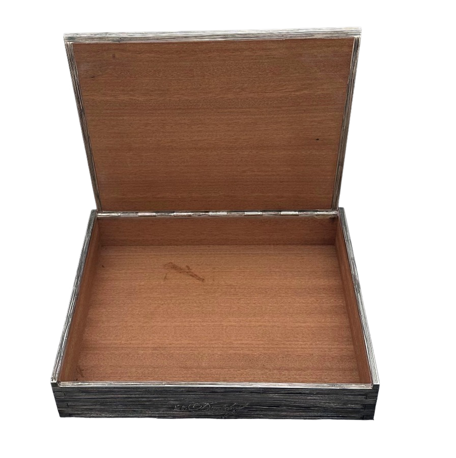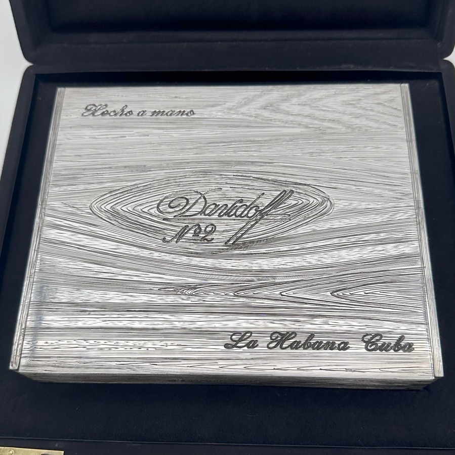 Fabulous American made sterling silver cigar box designed to replicate a traditonal rectangular cedar Davidoff cigar box. The box has additonal cedar linings which purposefully infuses with the aroma of the cigars.