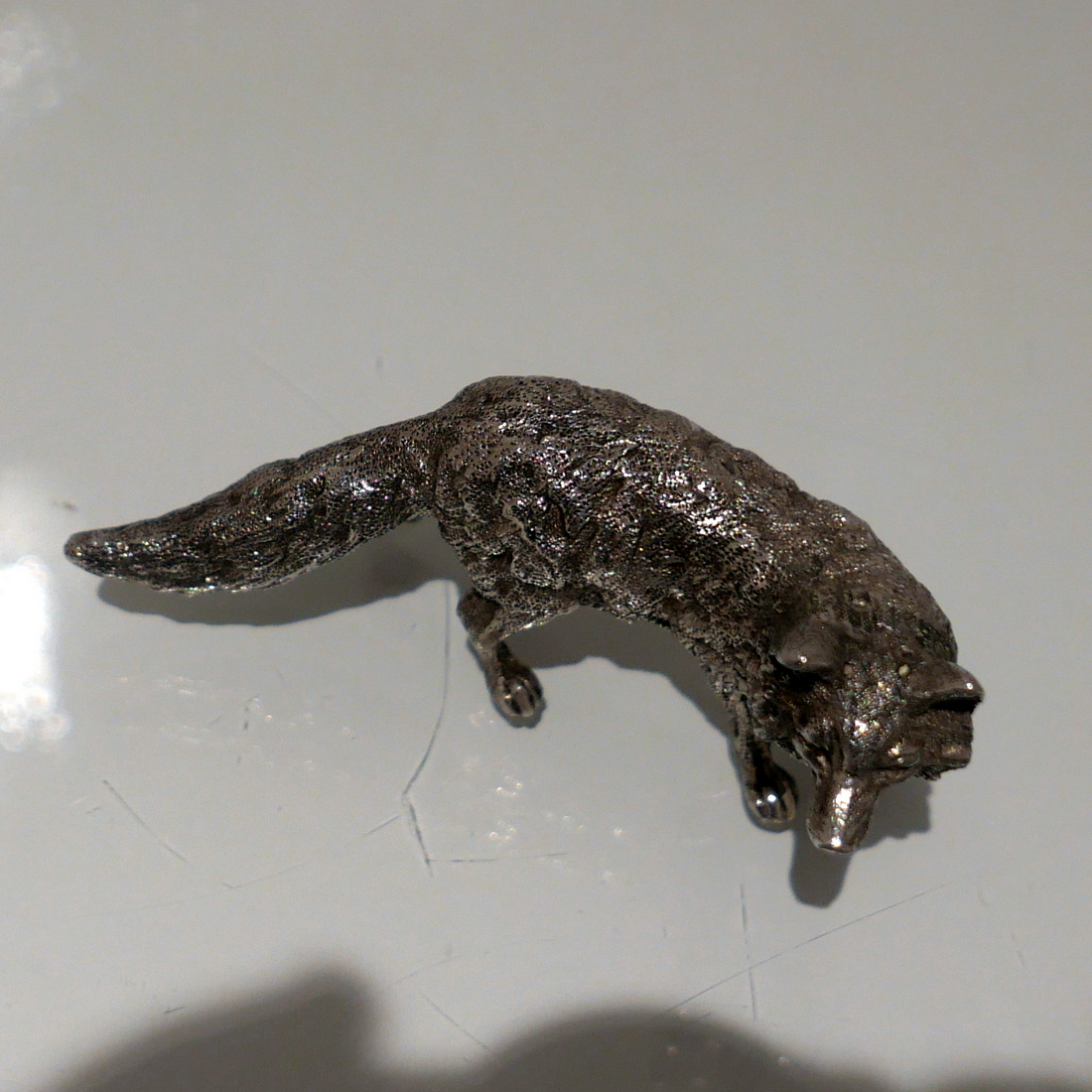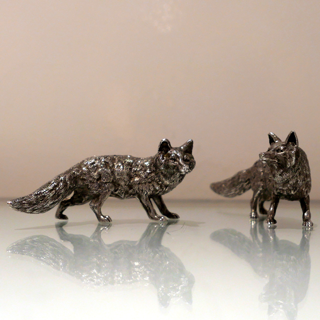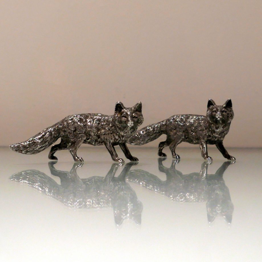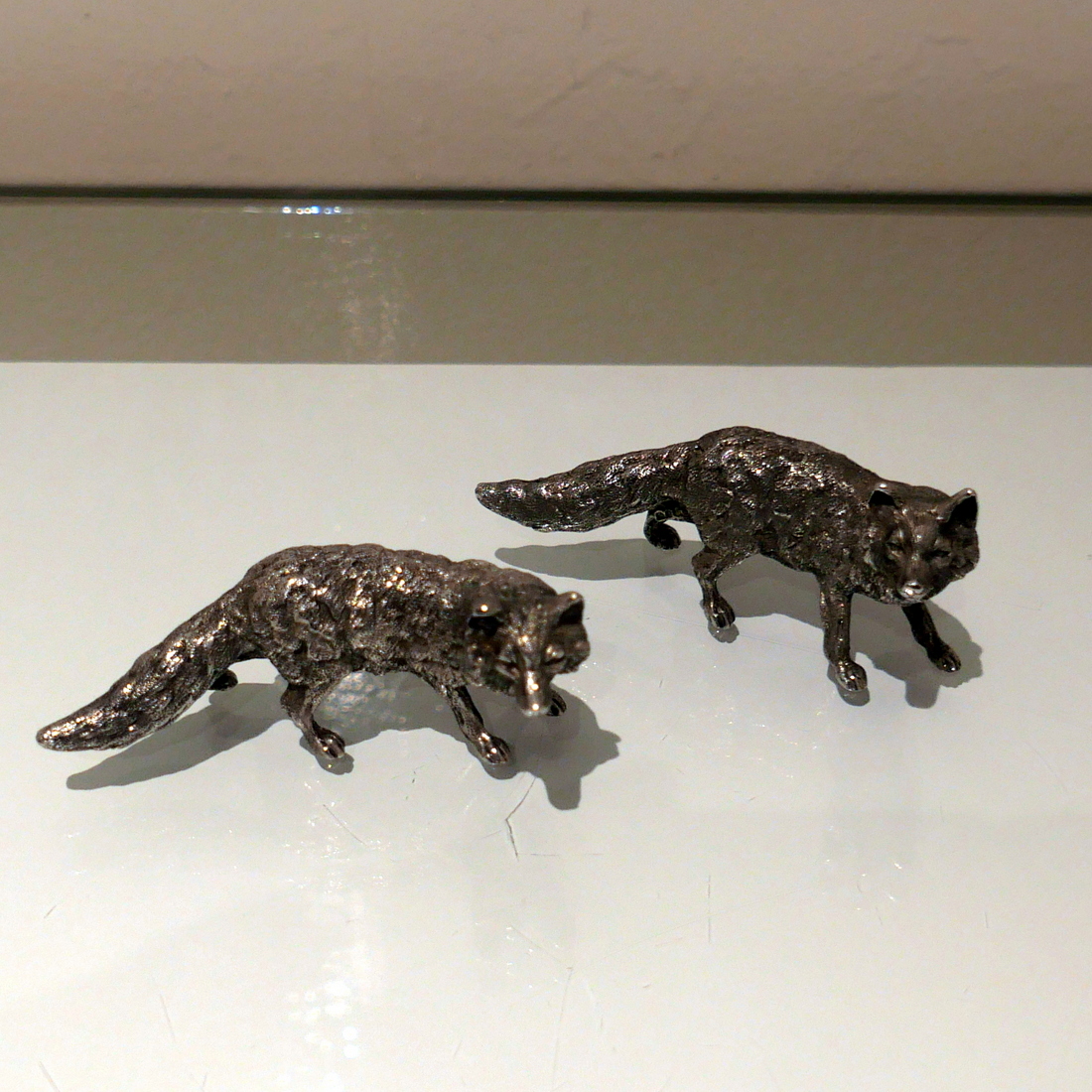 A sweet pair of sterling silver cast foxes modelled with superior attention to detailing throughout.