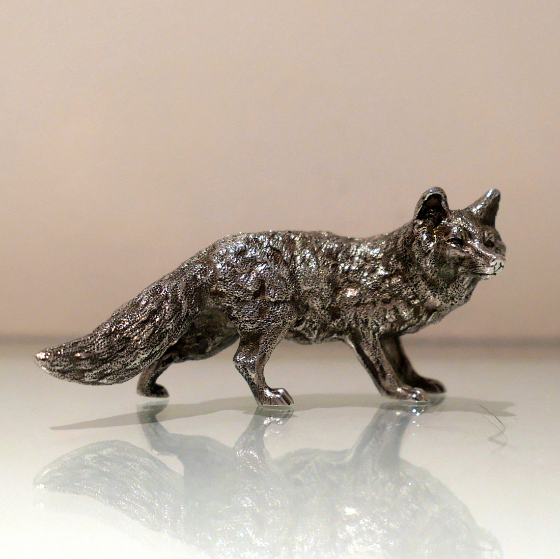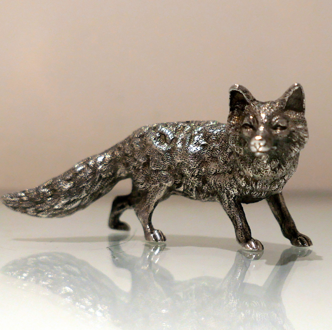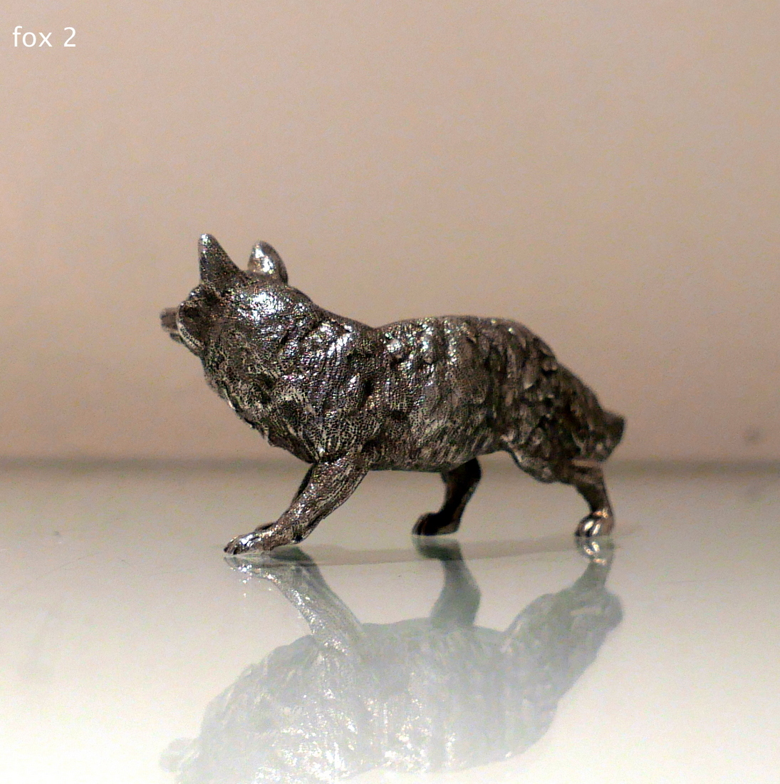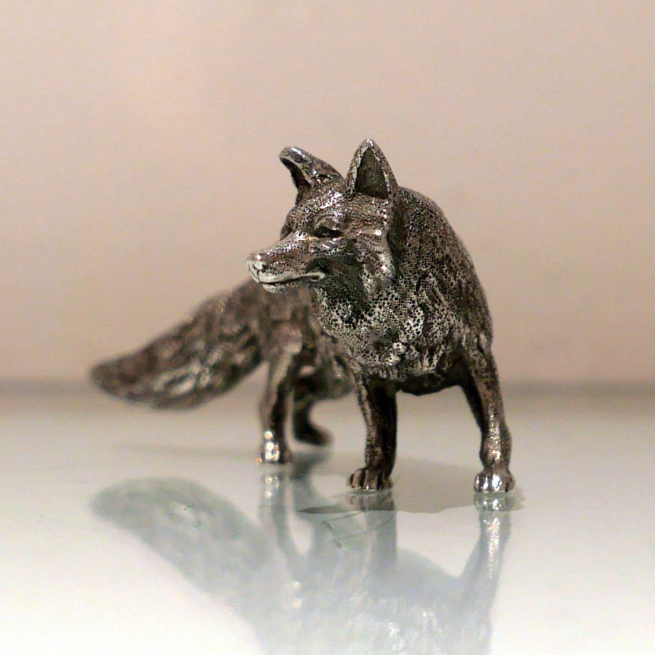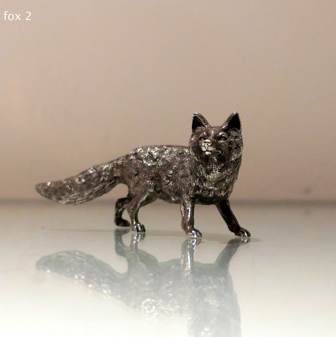 A sweet pair of sterling silver cast foxes modelled with superior attention to detailing throughout.