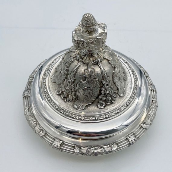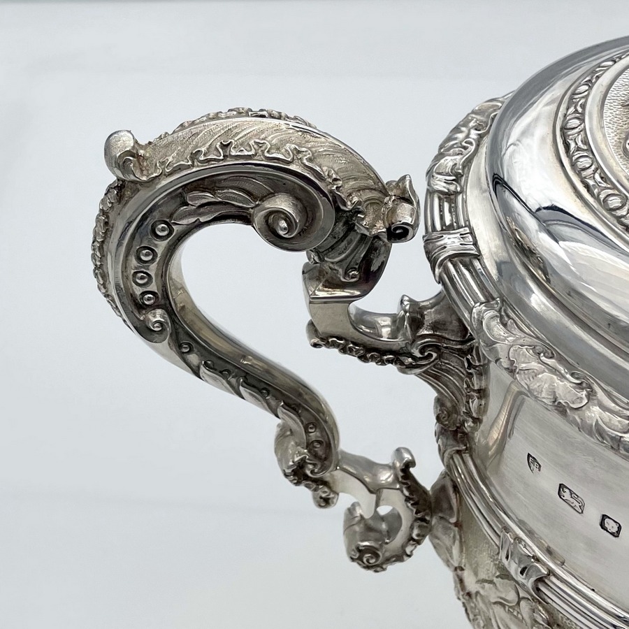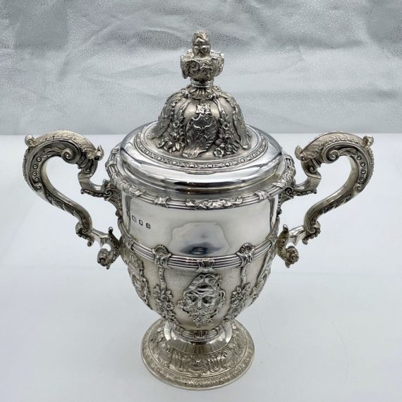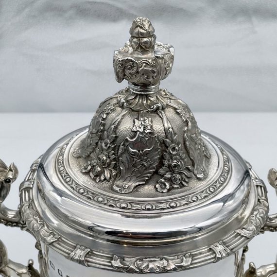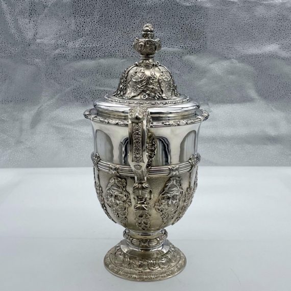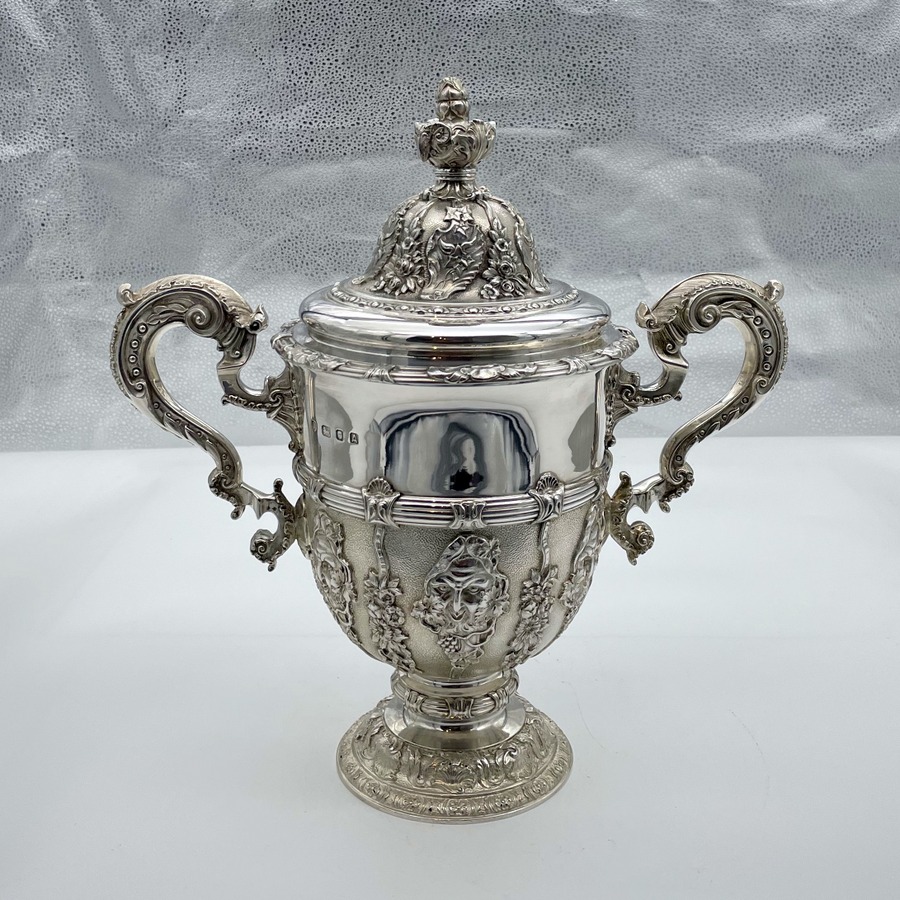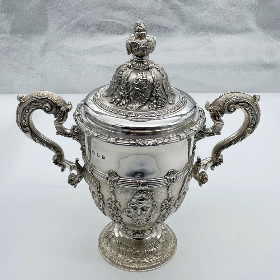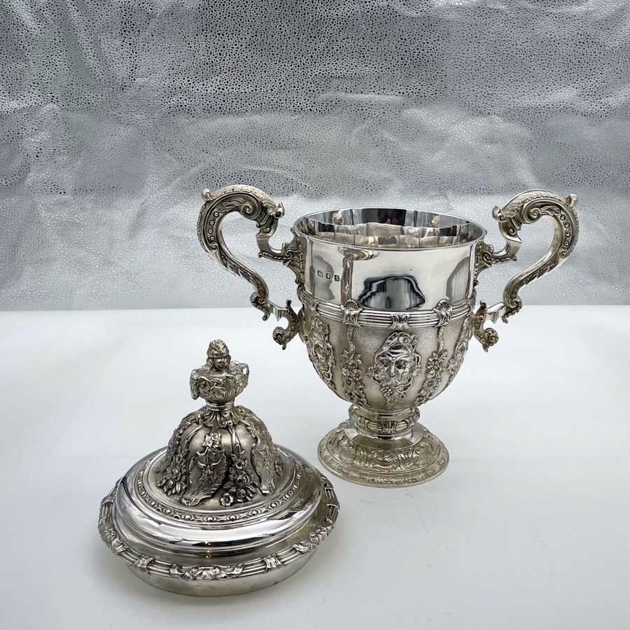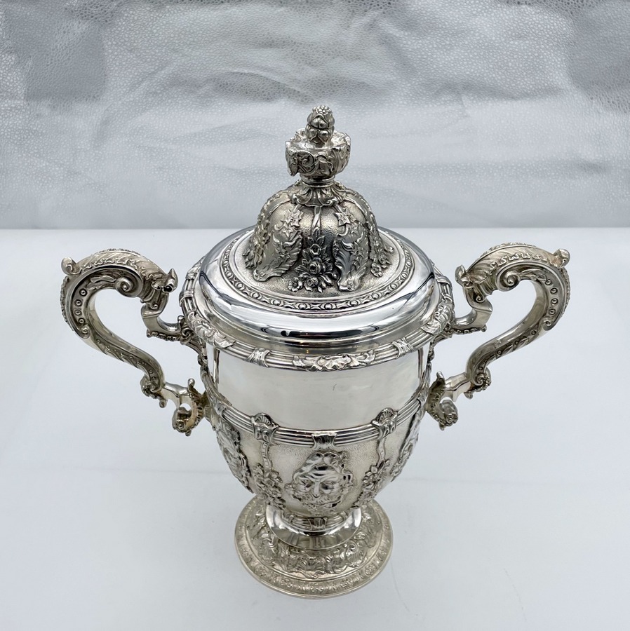 A fine and incredibly impressive 20th century Rococo copy sterling silver cup and cover.